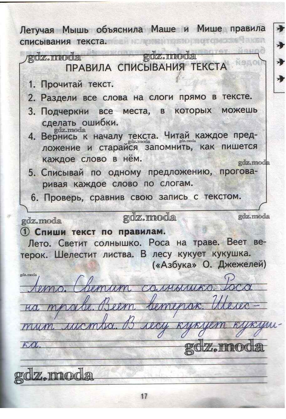 ОТВЕТ на задание № 17 Тетрадь для самостоятельной работы по Русскому языку 1 класс Гольфман Перспективная начальная школа