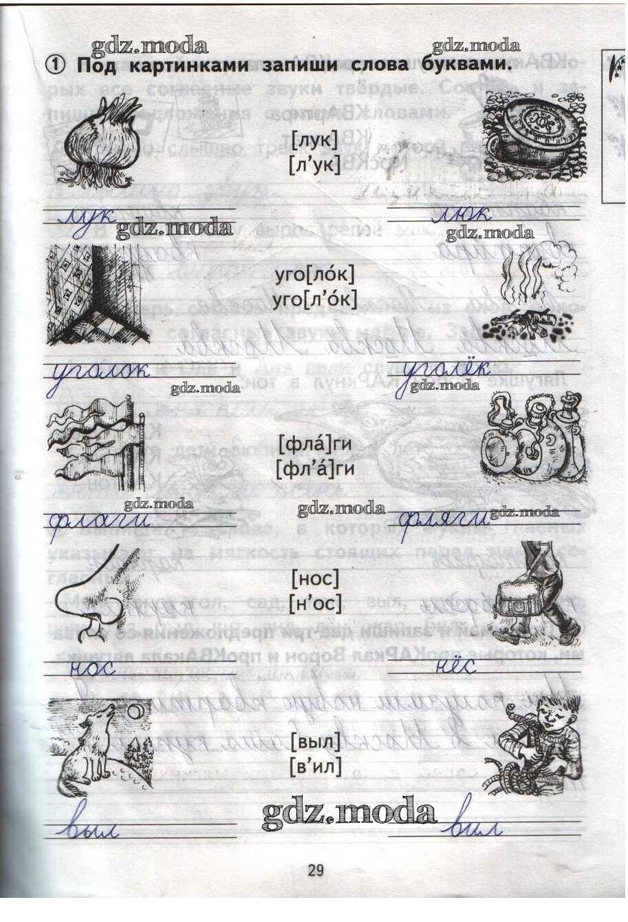 ОТВЕТ на задание № 29 Тетрадь для самостоятельной работы по Русскому языку 1 класс Гольфман Перспективная начальная школа