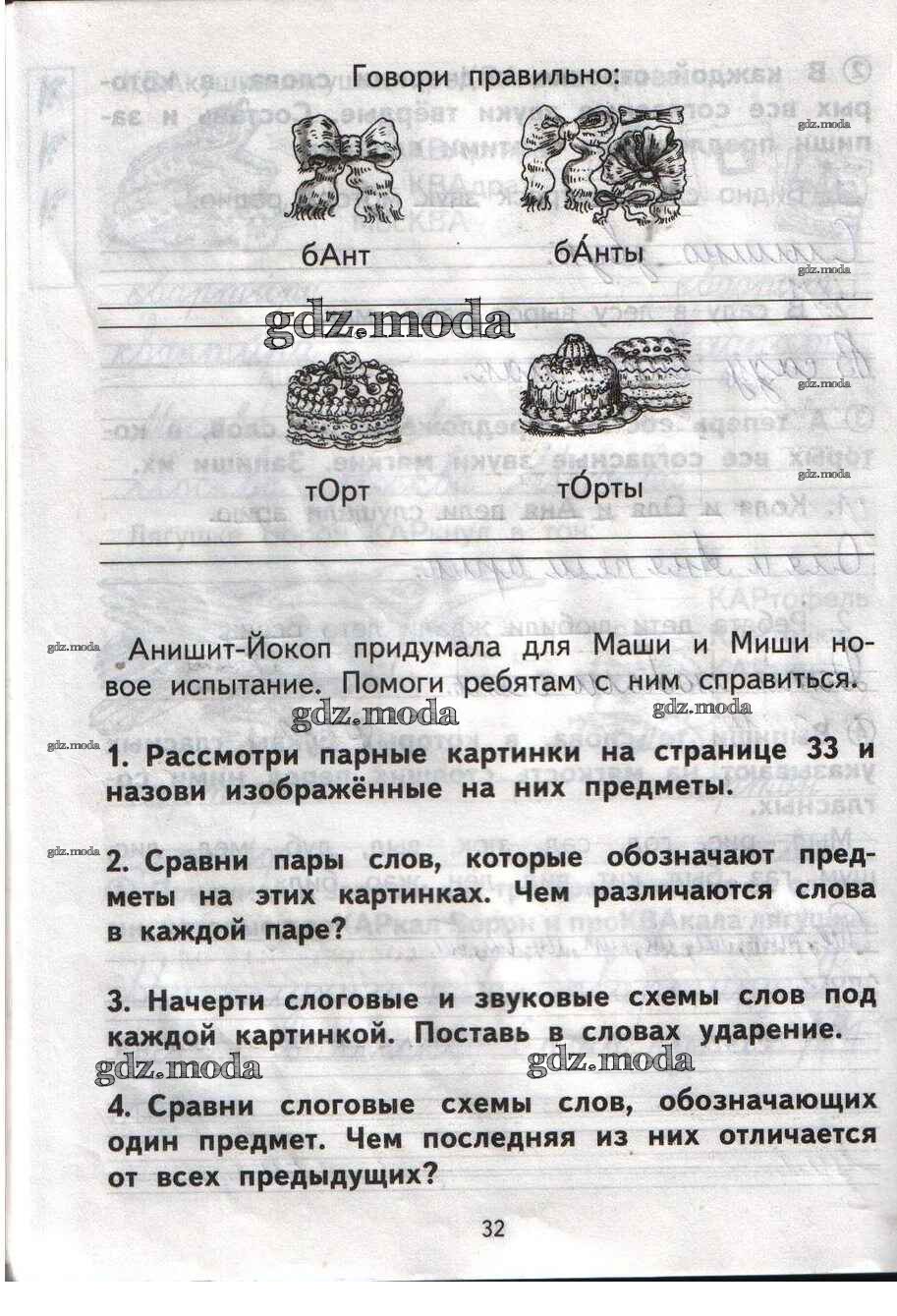 ОТВЕТ на задание № 32 Тетрадь для самостоятельной работы по Русскому языку 1 класс Гольфман Перспективная начальная школа