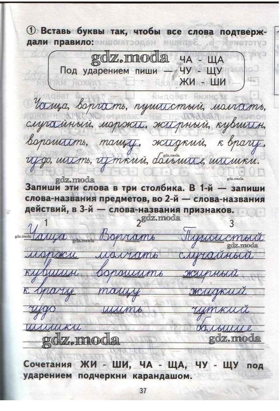 ОТВЕТ на задание № 37 Тетрадь для самостоятельной работы по Русскому языку 1 класс Гольфман Перспективная начальная школа