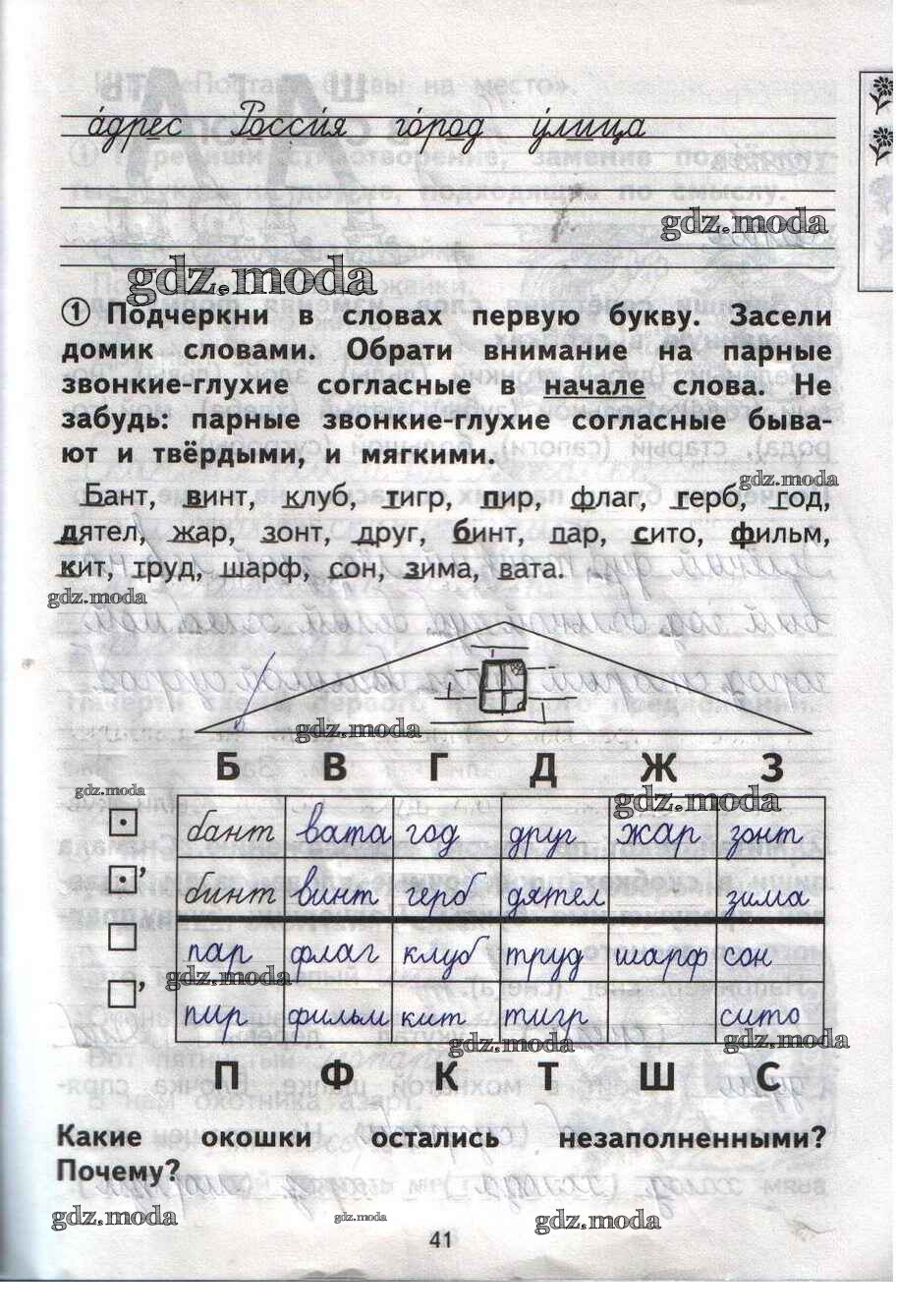 ОТВЕТ на задание № 41 Тетрадь для самостоятельной работы по Русскому языку 1 класс Гольфман Перспективная начальная школа