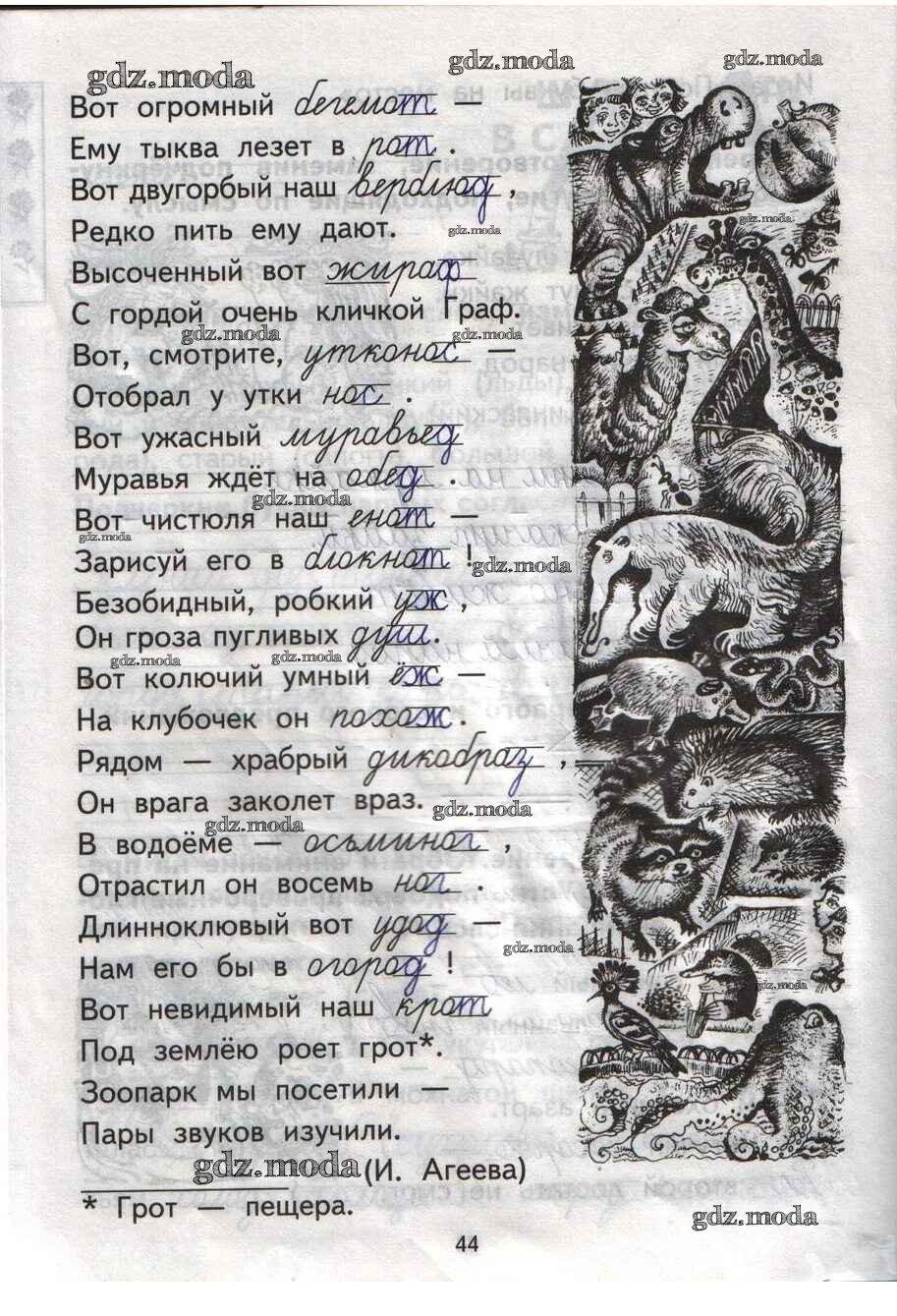 ГДЗ решение к заданию № 44 Русский язык 1 класс тетрадь для самостоятельной работы Гольфман Е.Р. Академия 2016 бесплатно на гдз.мода!