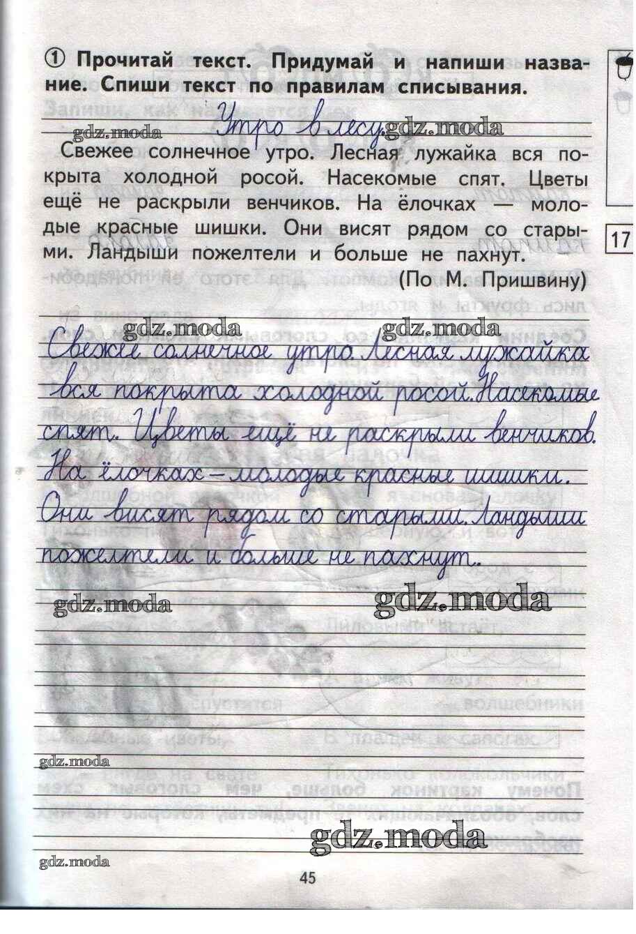 ОТВЕТ на задание № 45 Тетрадь для самостоятельной работы по Русскому языку 1 класс Гольфман Перспективная начальная школа