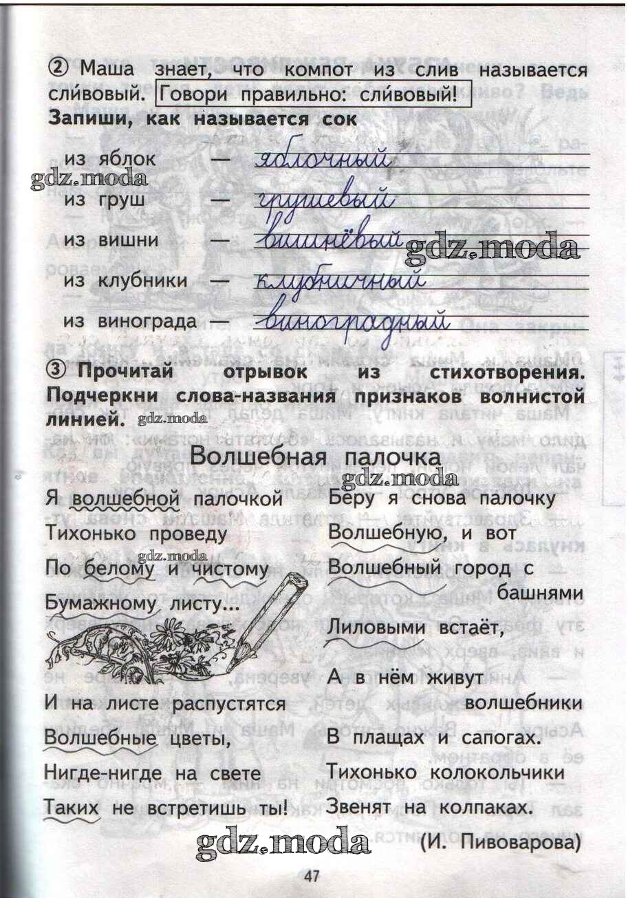 ОТВЕТ на задание № 47 Тетрадь для самостоятельной работы по Русскому языку 1 класс Гольфман Перспективная начальная школа