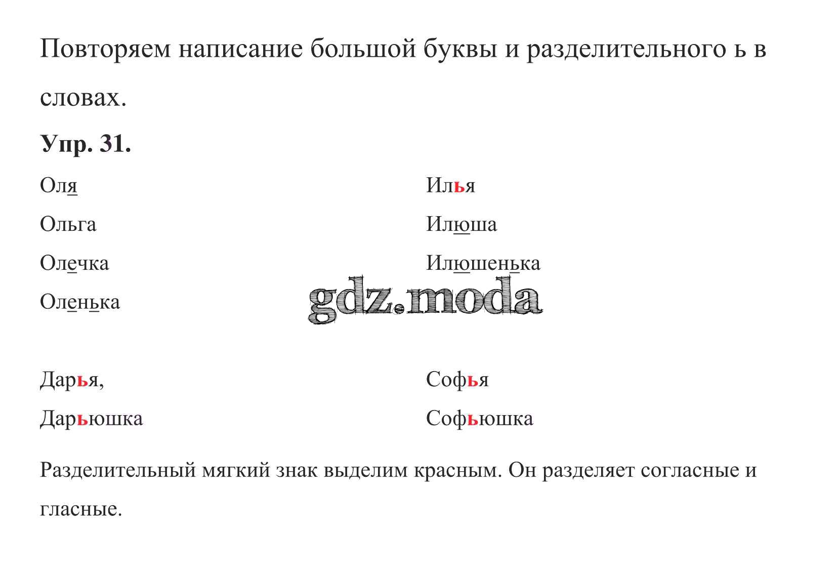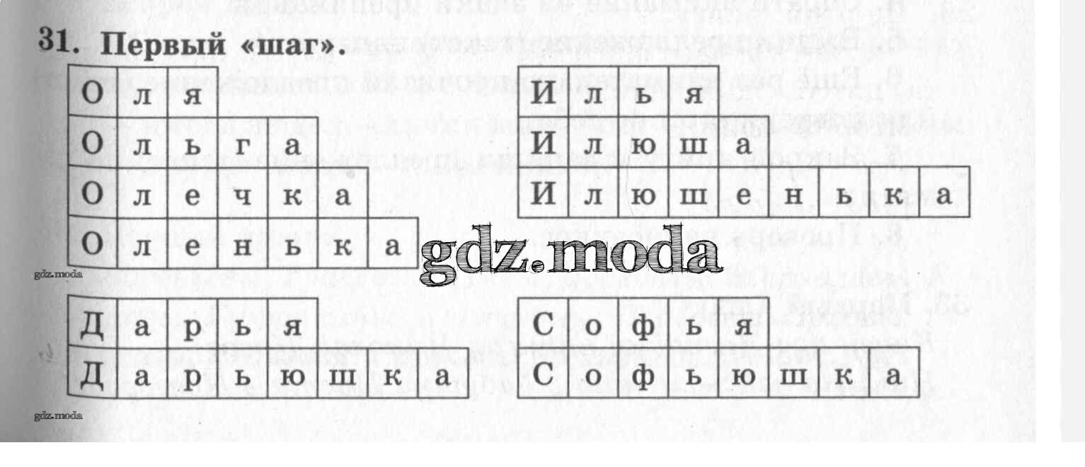 ОТВЕТ на задание № 31 Учебник по Русскому языку 1 класс Бунеев Школа 2100