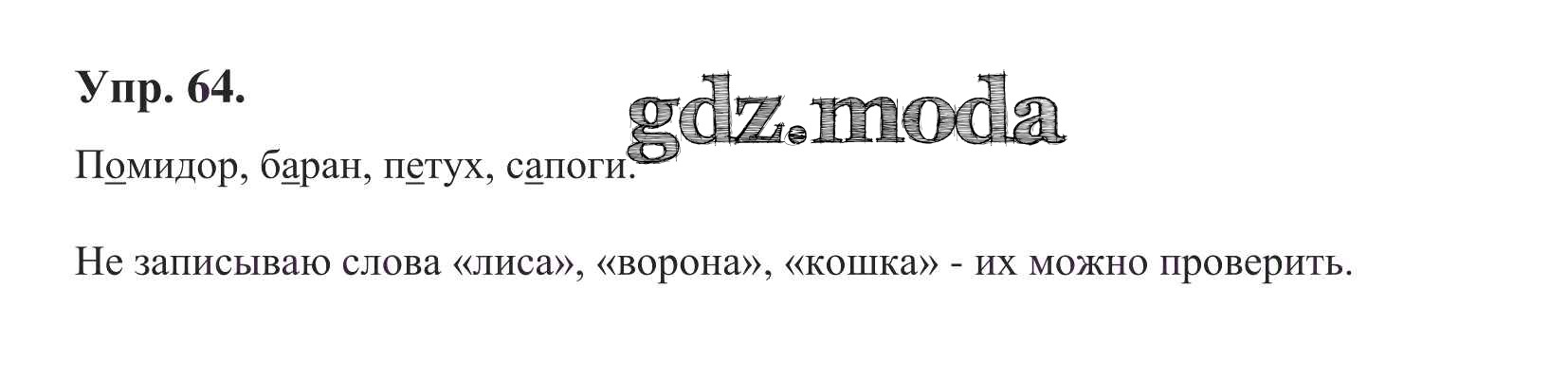 ОТВЕТ на задание № 64 Учебник по Русскому языку 1 класс Бунеев Школа 2100