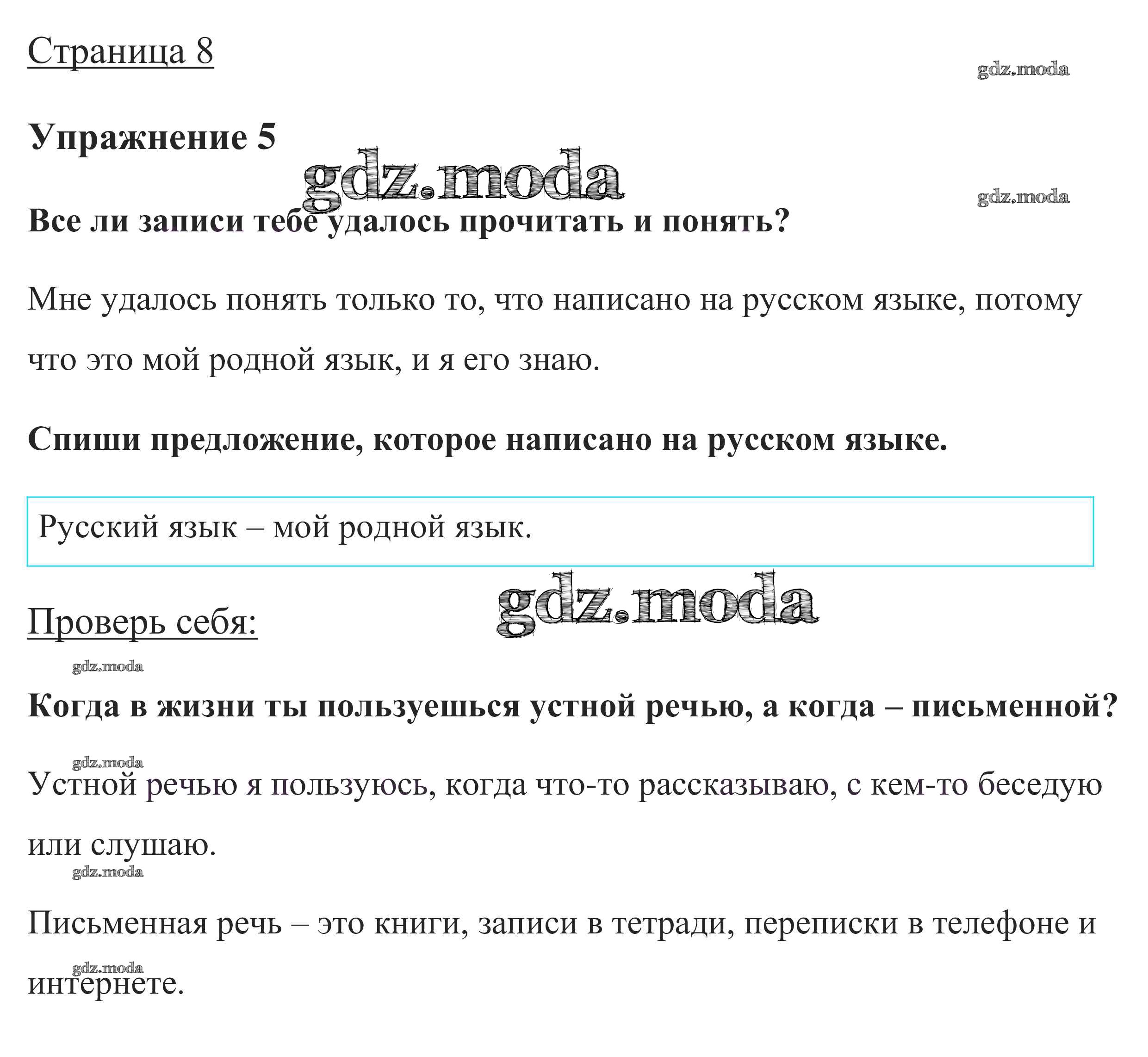 ОТВЕТ на задание № стр. 8 Учебник по Русскому языку 1 класс Канакина Школа России