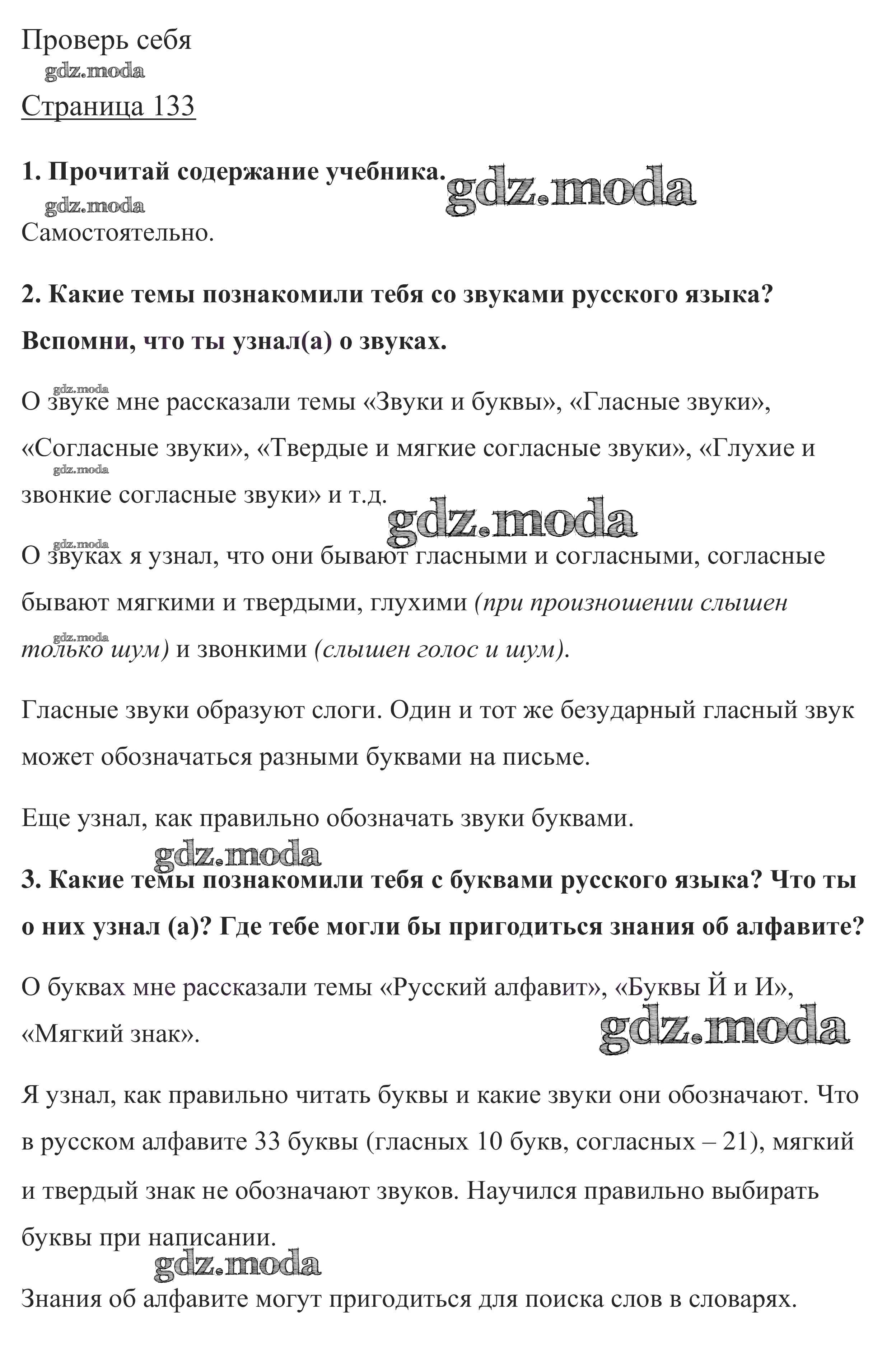ОТВЕТ на задание № стр. 133 Учебник по Русскому языку 1 класс Канакина Школа России