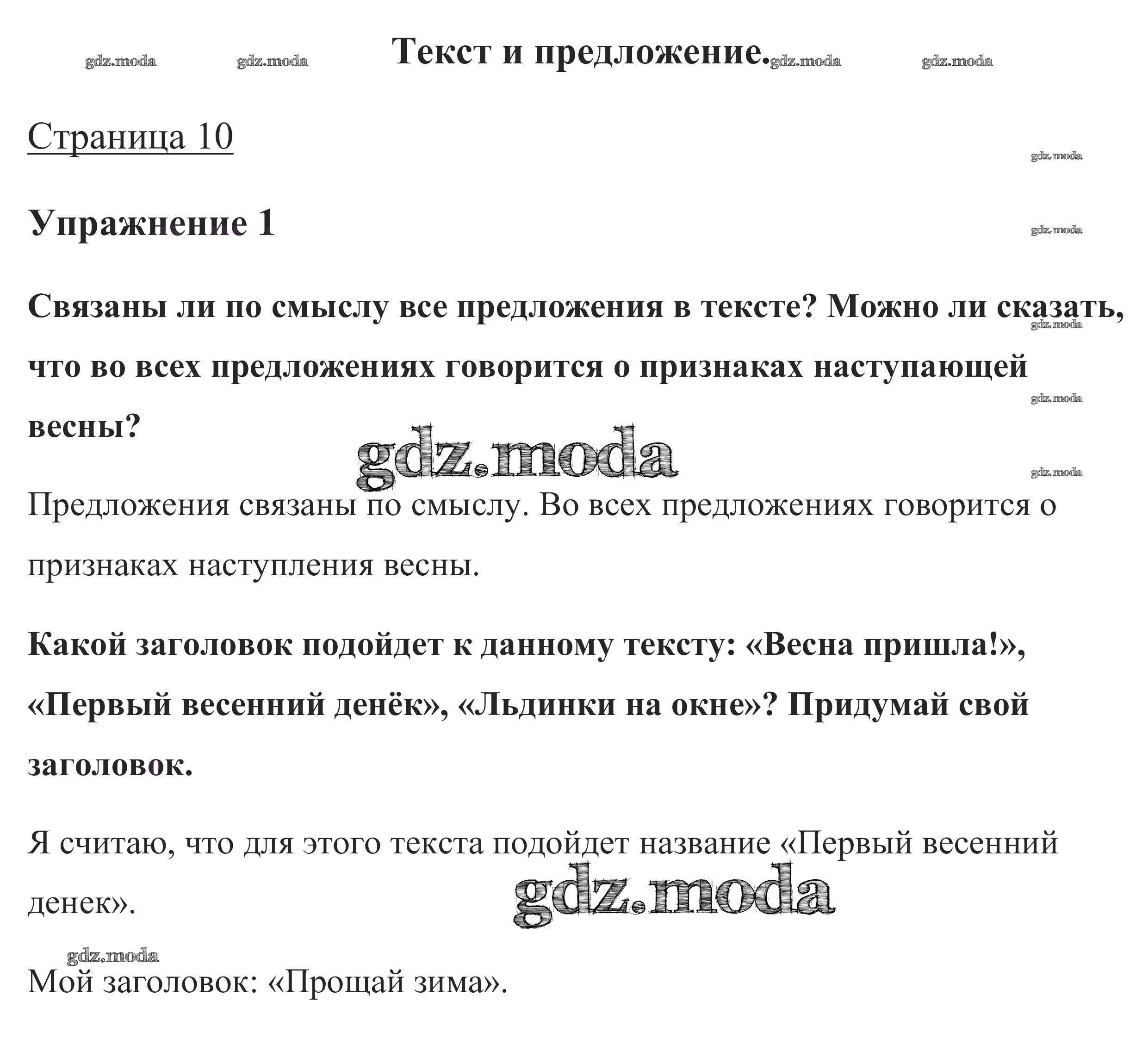 ОТВЕТ на задание № стр. 10 Учебник по Русскому языку 1 класс Канакина Школа России