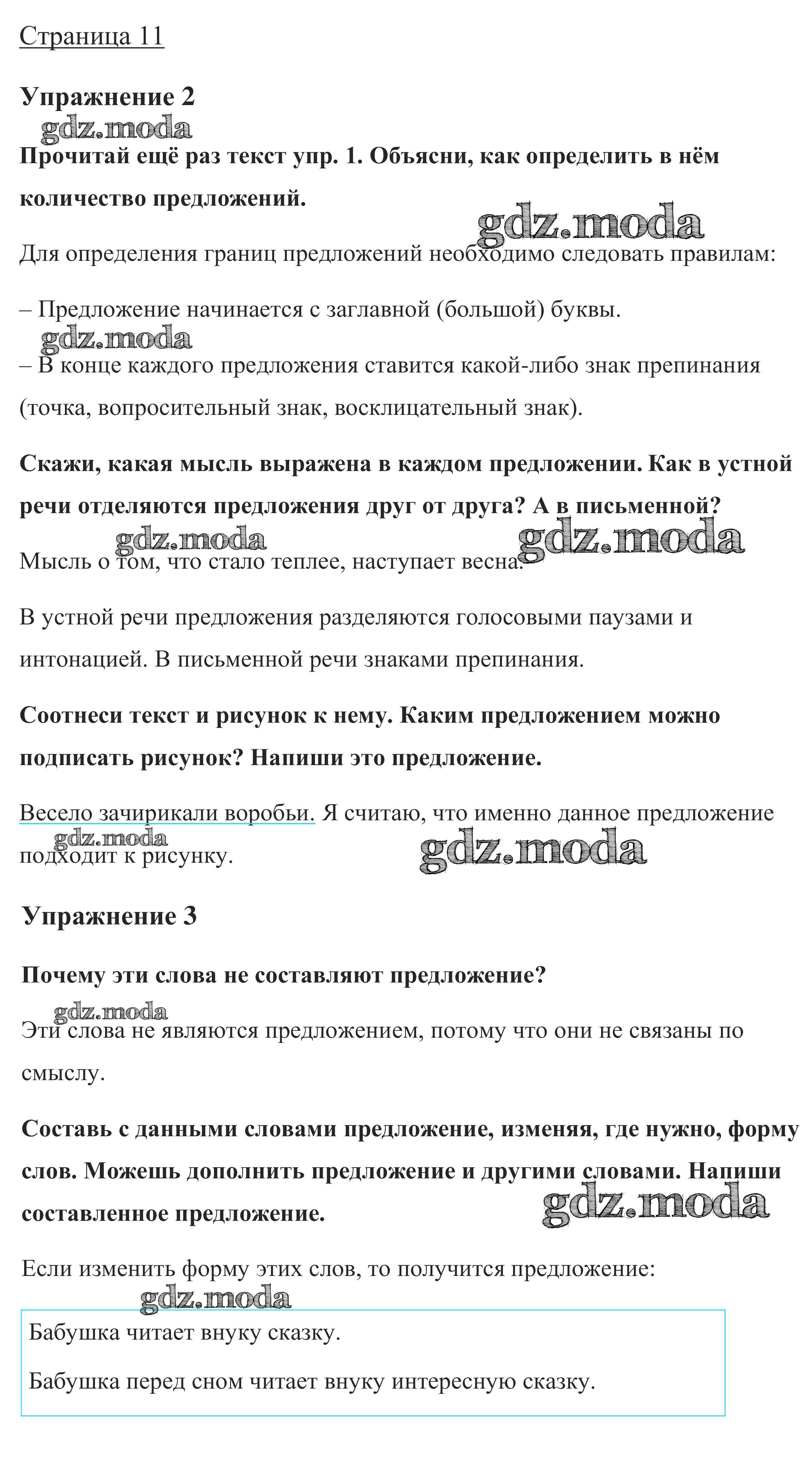 ОТВЕТ на задание № стр. 11 Учебник по Русскому языку 1 класс Канакина Школа России