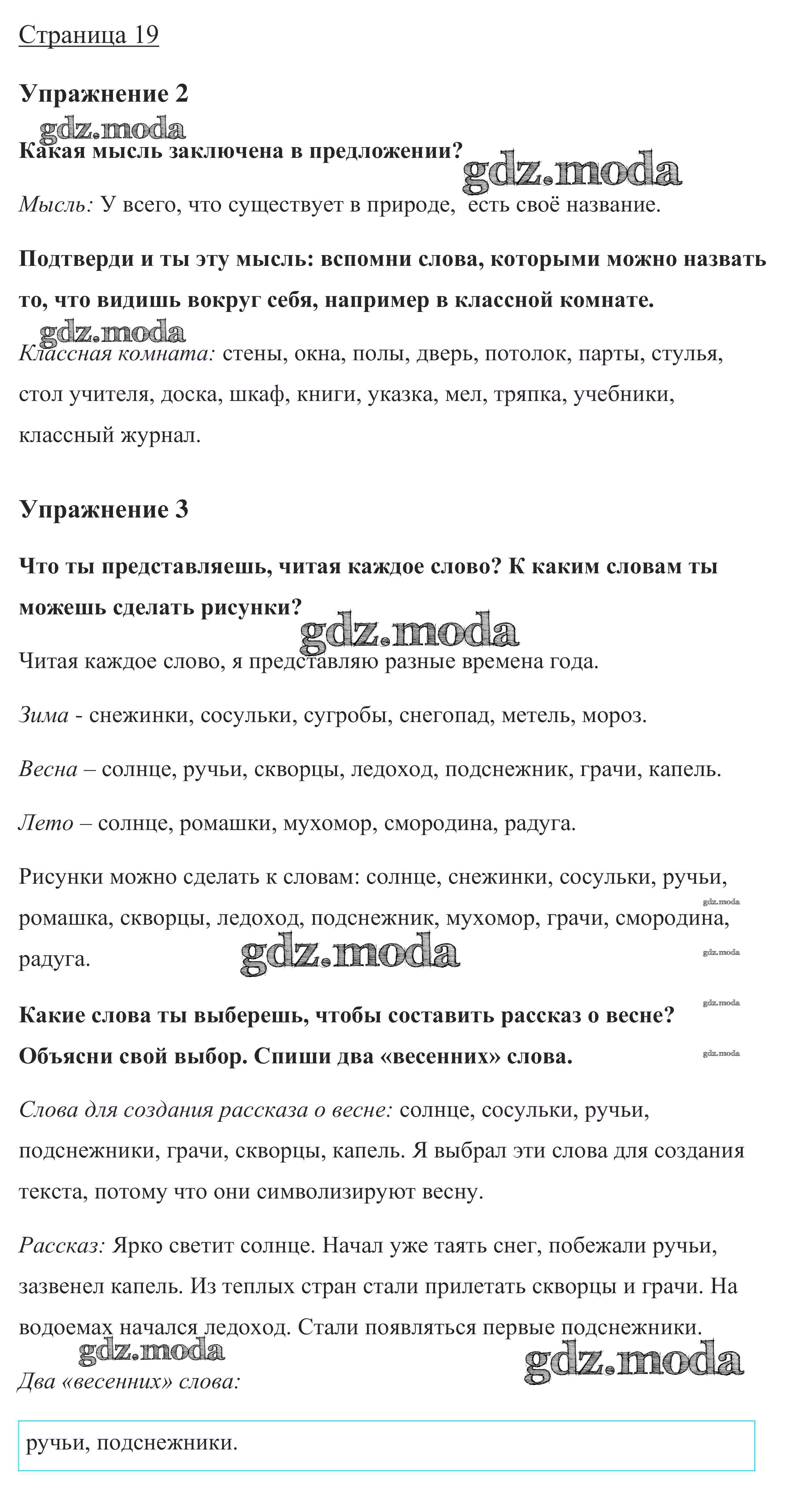 ОТВЕТ на задание № стр. 19 Учебник по Русскому языку 1 класс Канакина Школа России