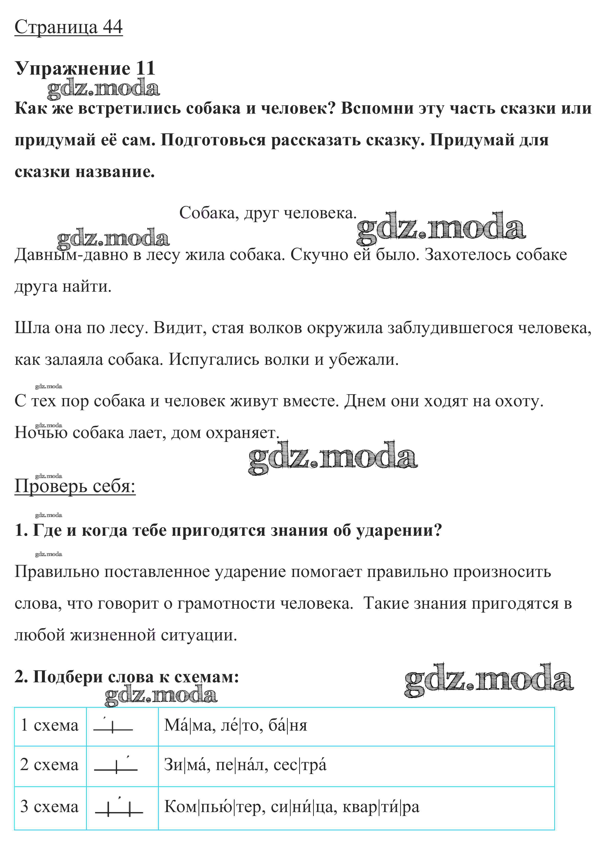 ОТВЕТ на задание № стр. 44 Учебник по Русскому языку 1 класс Канакина Школа России