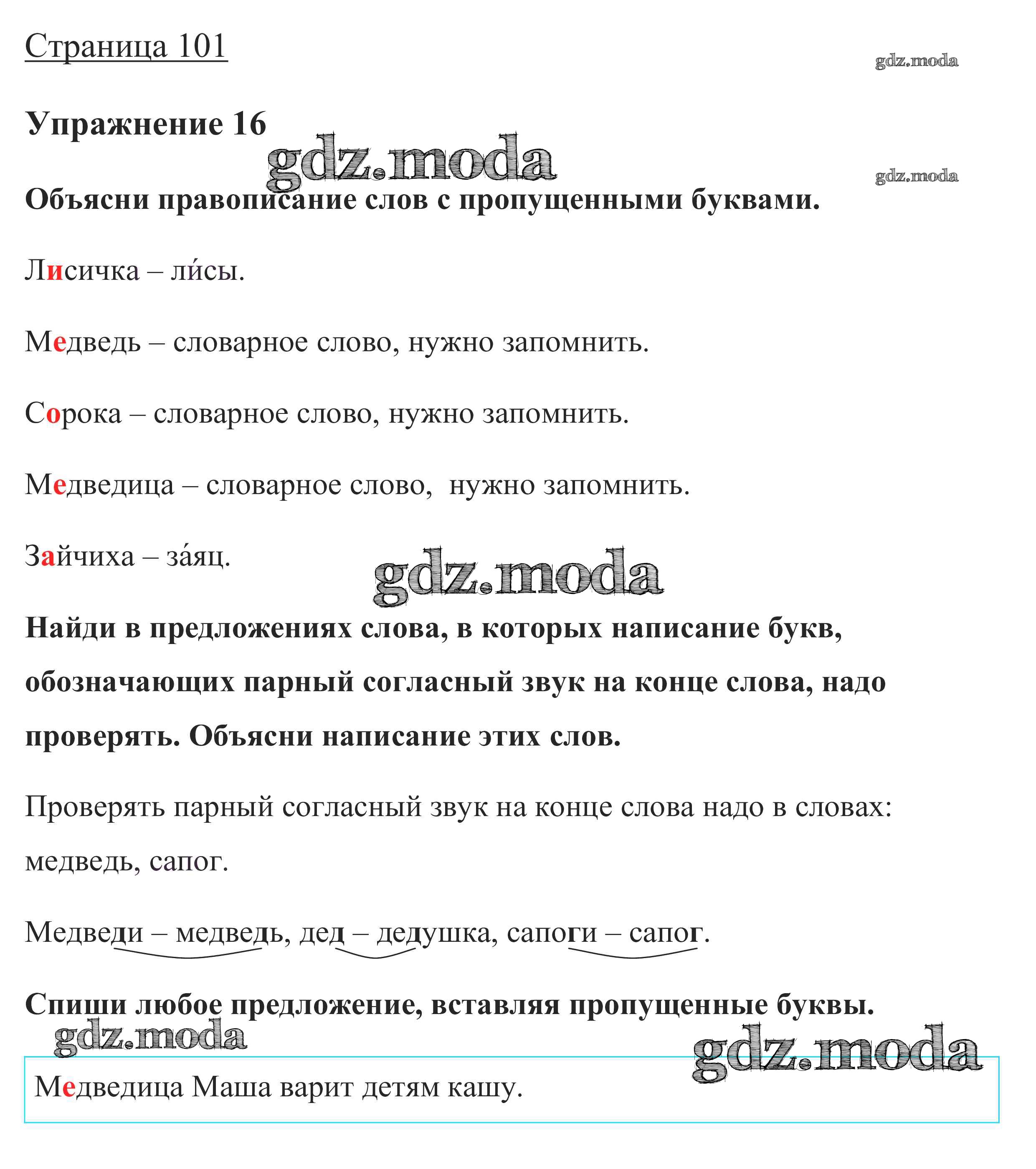 ОТВЕТ на задание № стр. 101 Учебник по Русскому языку 1 класс Канакина Школа России
