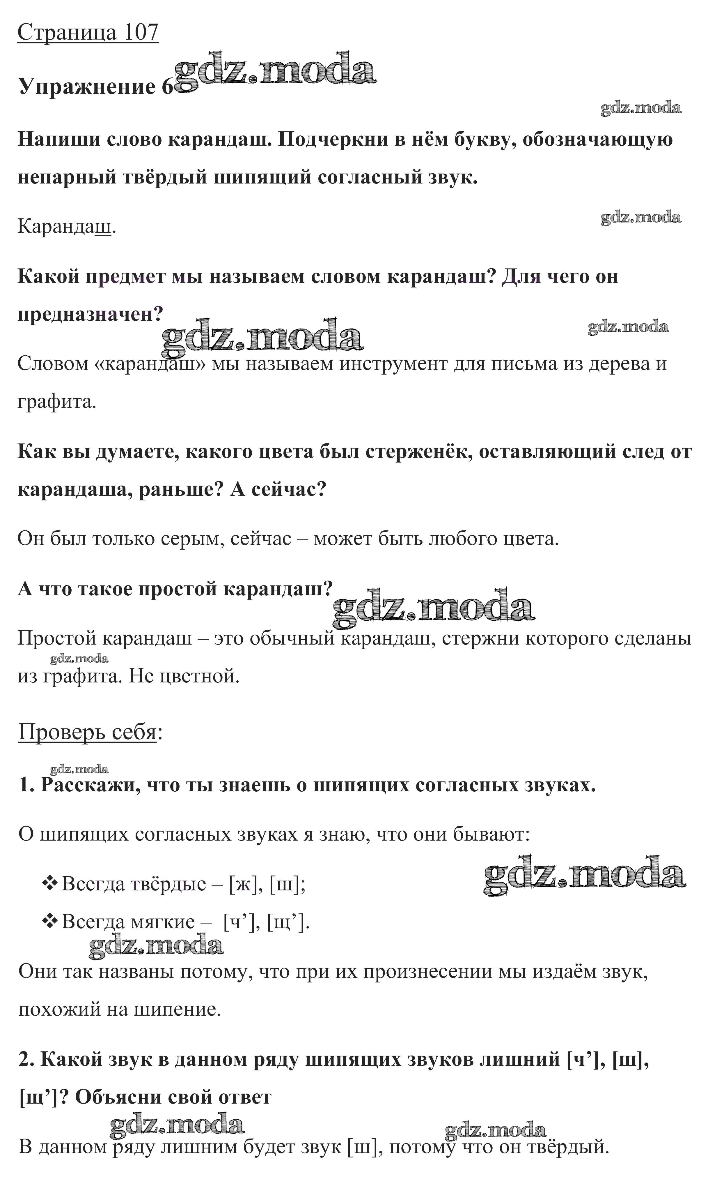 ОТВЕТ на задание № стр. 107 Учебник по Русскому языку 1 класс Канакина Школа России