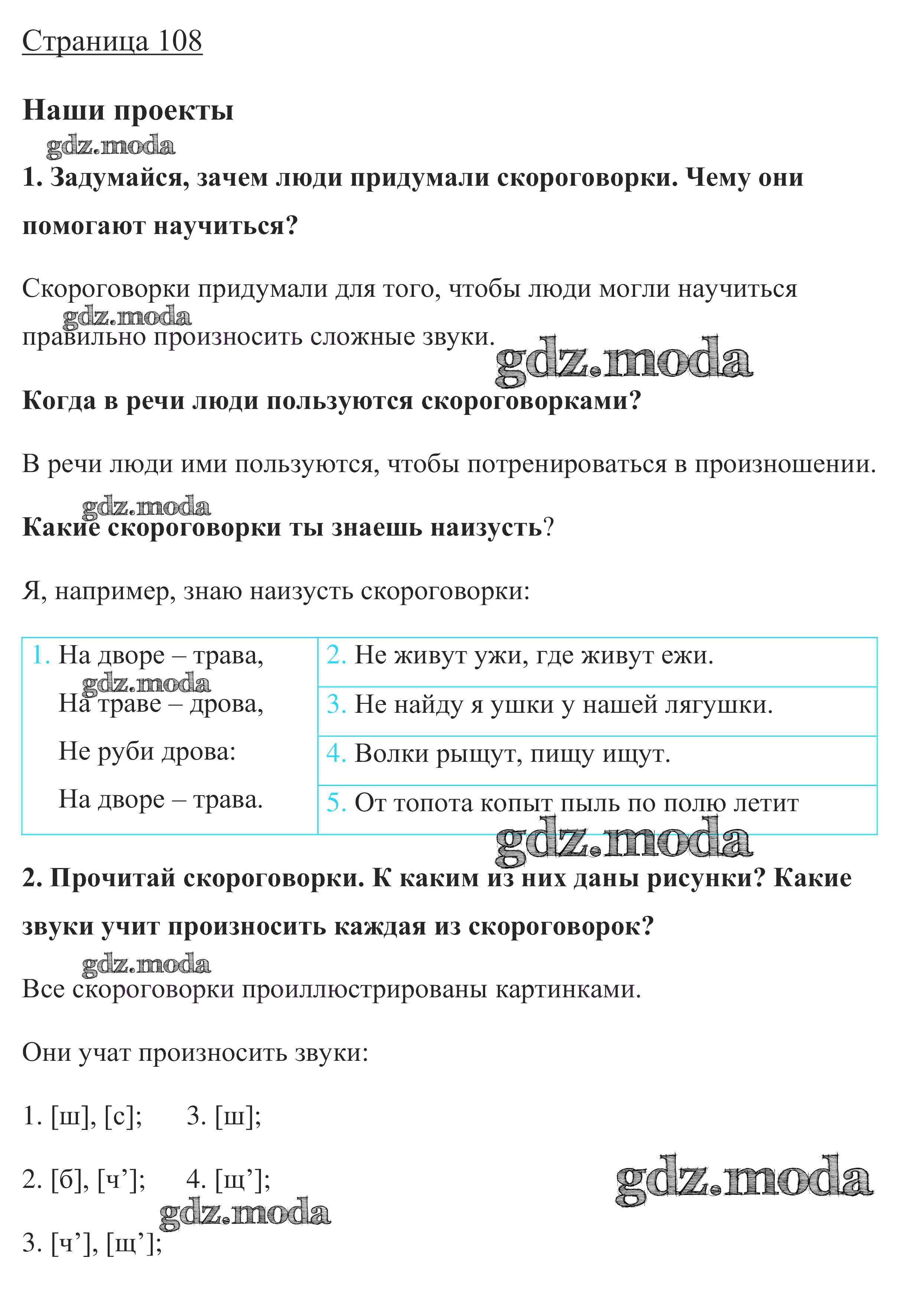 ОТВЕТ на задание № стр. 108 Учебник по Русскому языку 1 класс Канакина Школа России