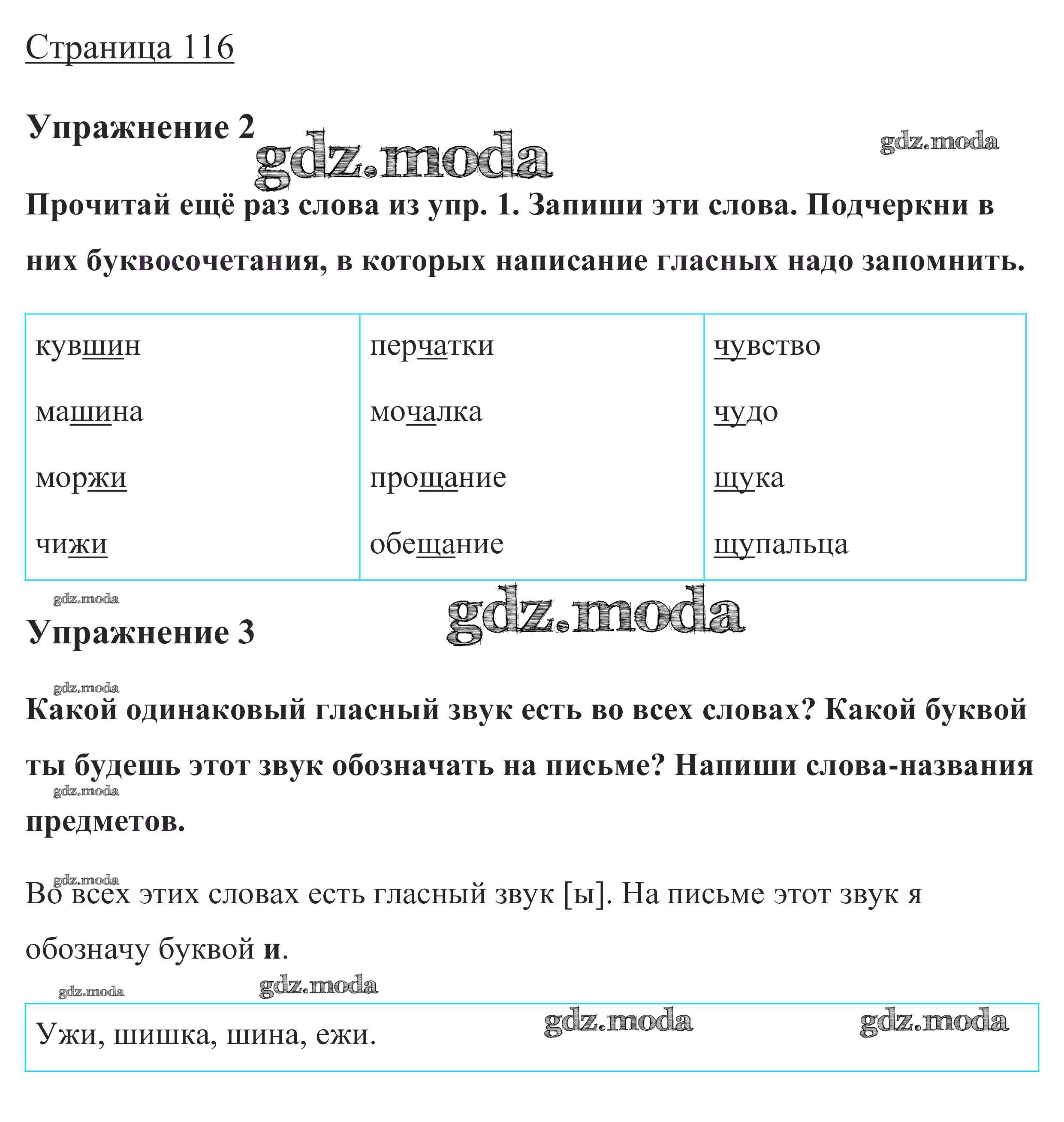 ОТВЕТ на задание № стр. 116 Учебник по Русскому языку 1 класс Канакина Школа России