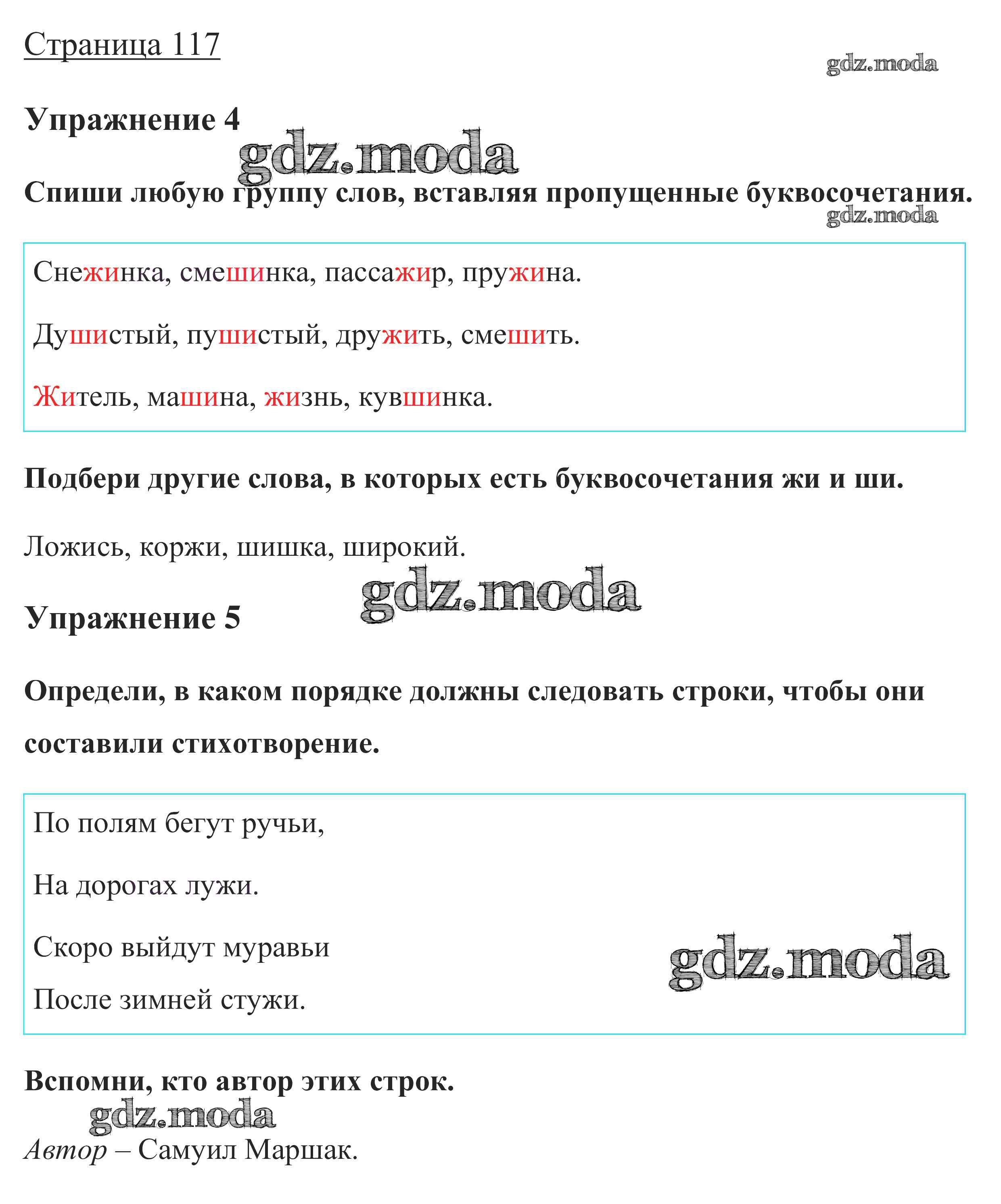 ОТВЕТ на задание № стр. 117 Учебник по Русскому языку 1 класс Канакина Школа России