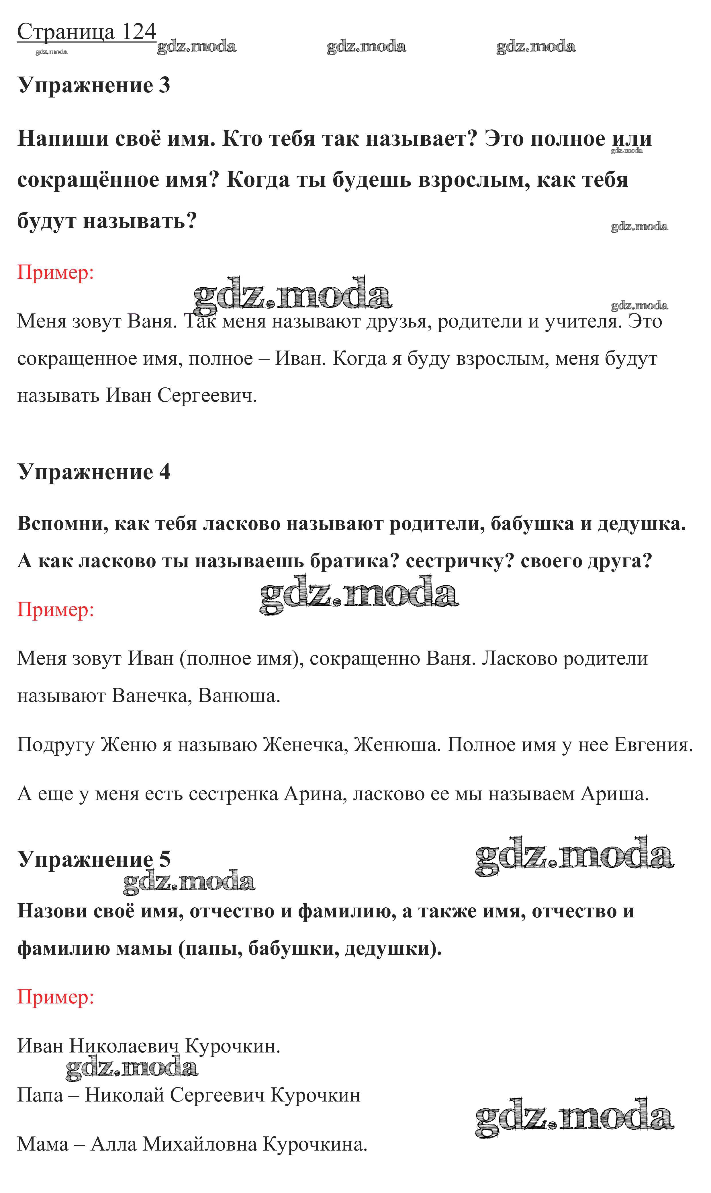 ОТВЕТ на задание № стр. 124 Учебник по Русскому языку 1 класс Канакина Школа России