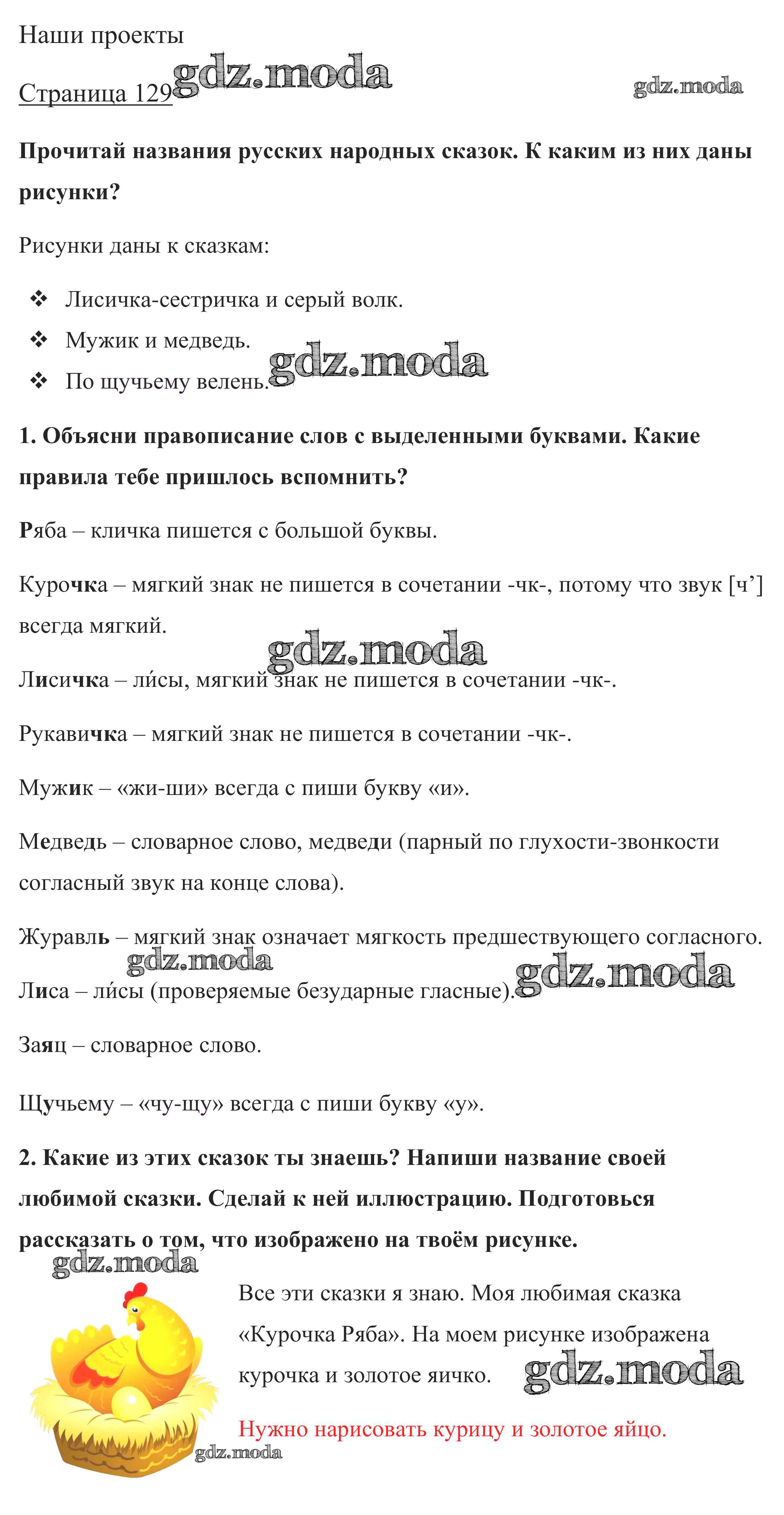 ОТВЕТ на задание № стр. 129 Учебник по Русскому языку 1 класс Канакина Школа России
