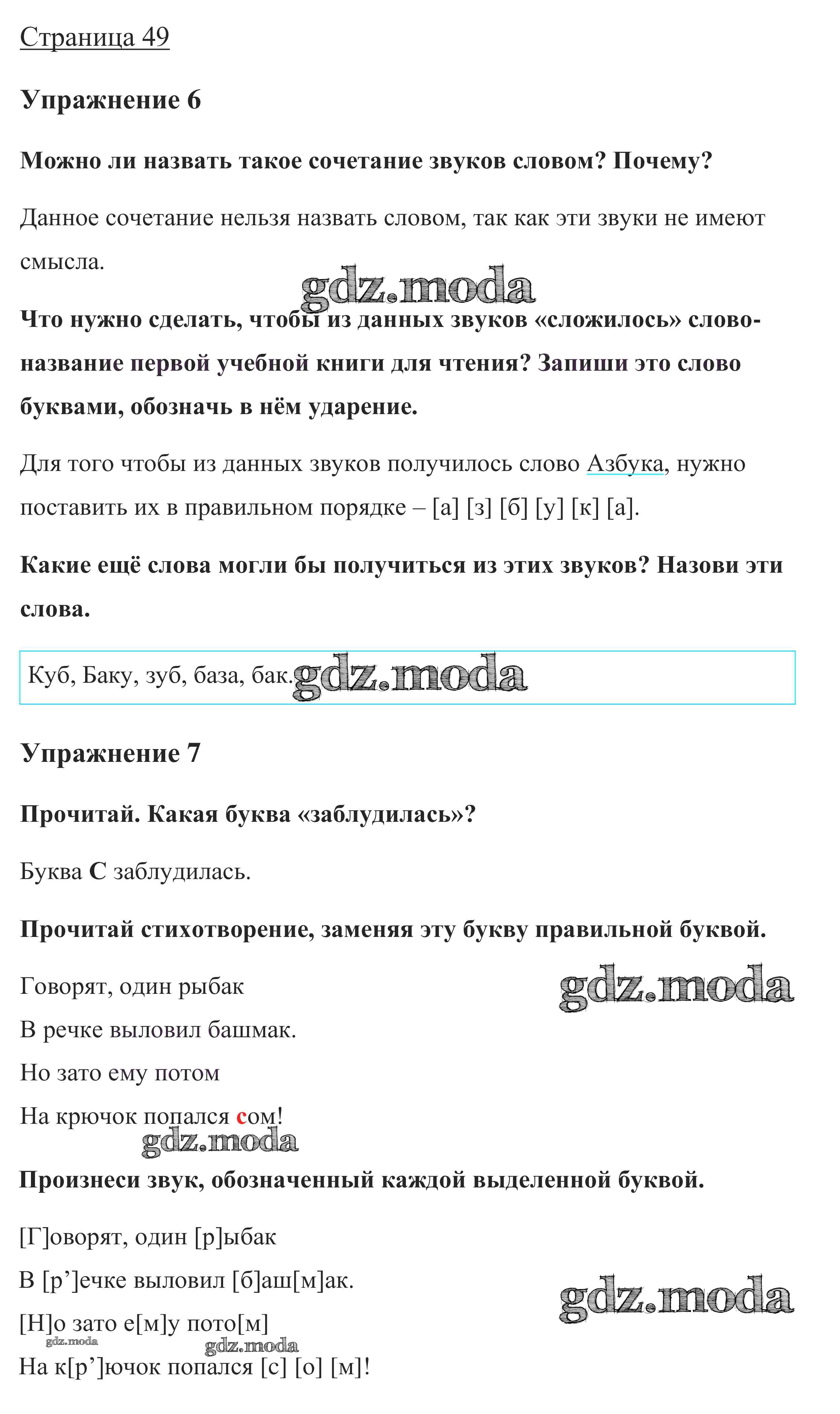 ОТВЕТ на задание № стр. 49 Учебник по Русскому языку 1 класс Канакина Школа России