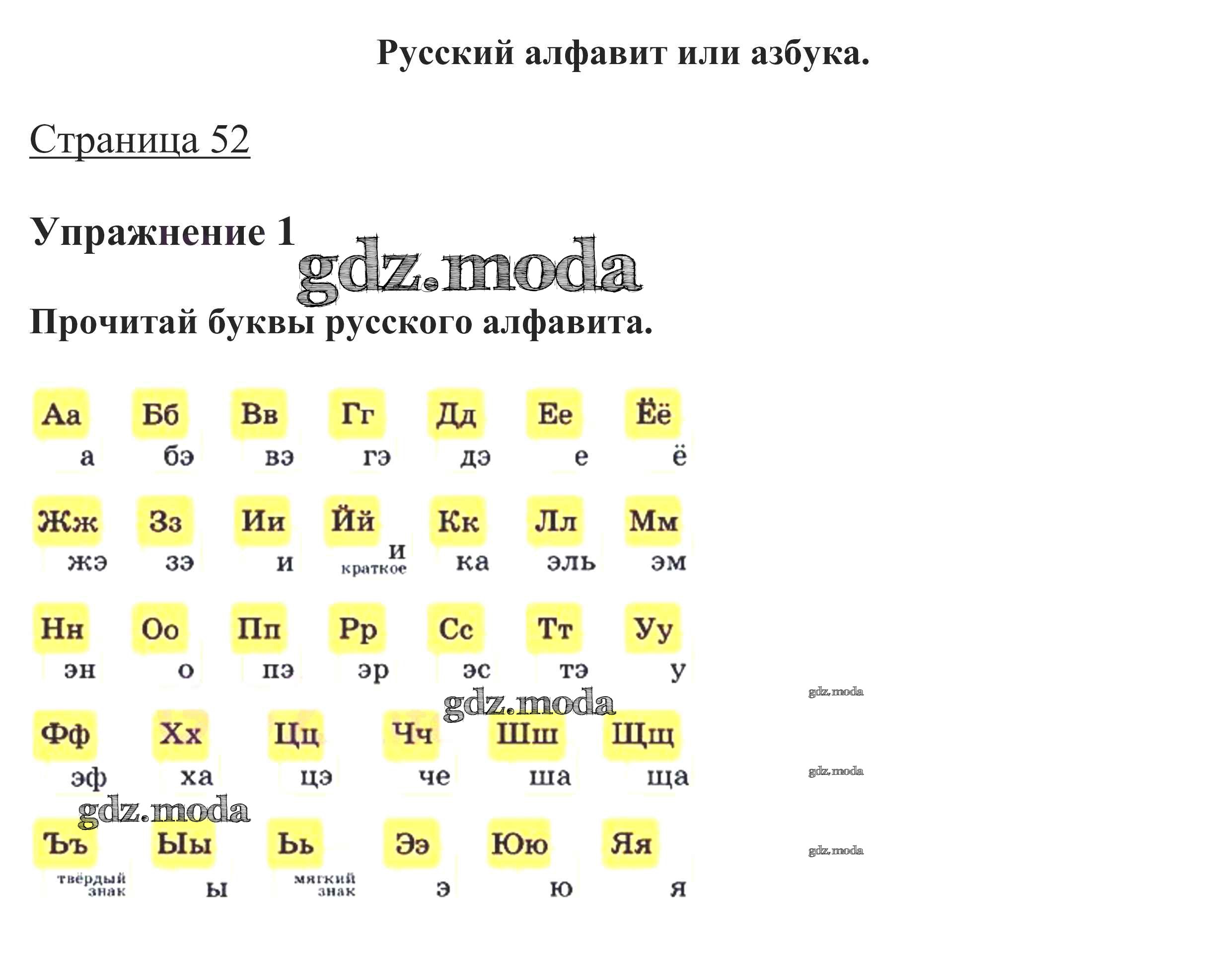 ОТВЕТ на задание № стр. 52 Учебник по Русскому языку 1 класс Канакина Школа России