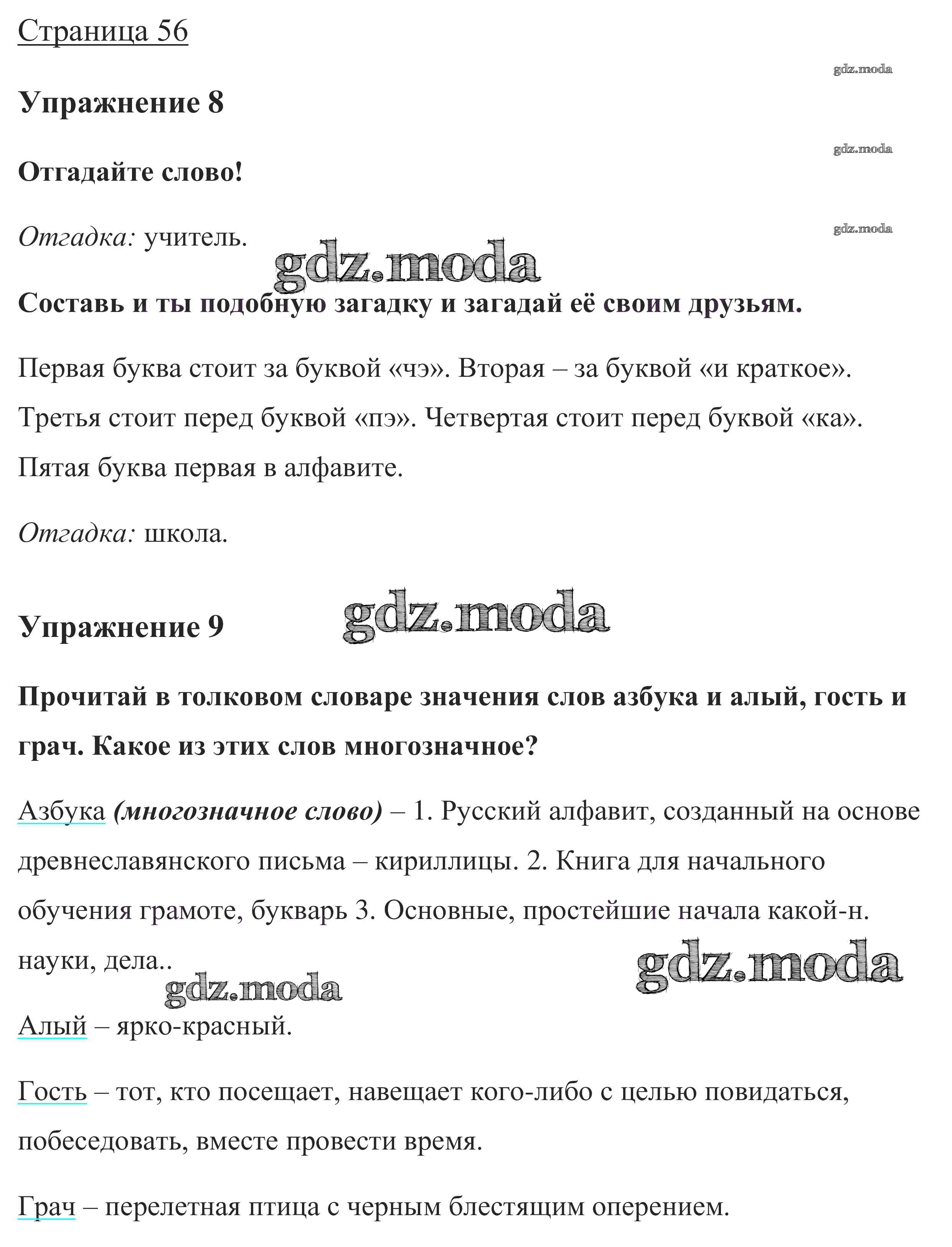 ОТВЕТ на задание № стр. 56 Учебник по Русскому языку 1 класс Канакина Школа России