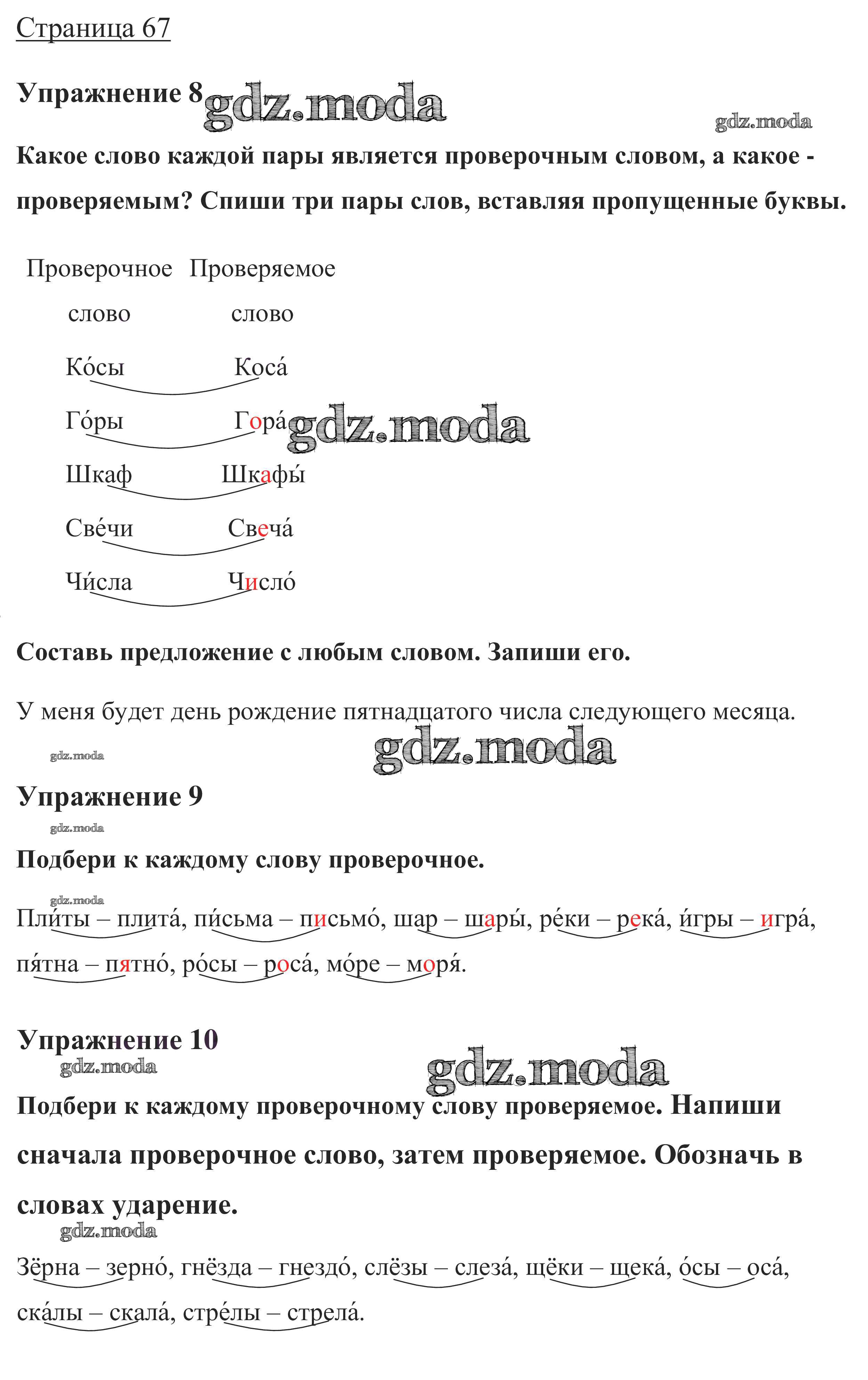 ОТВЕТ на задание № стр. 67 Учебник по Русскому языку 1 класс Канакина Школа России