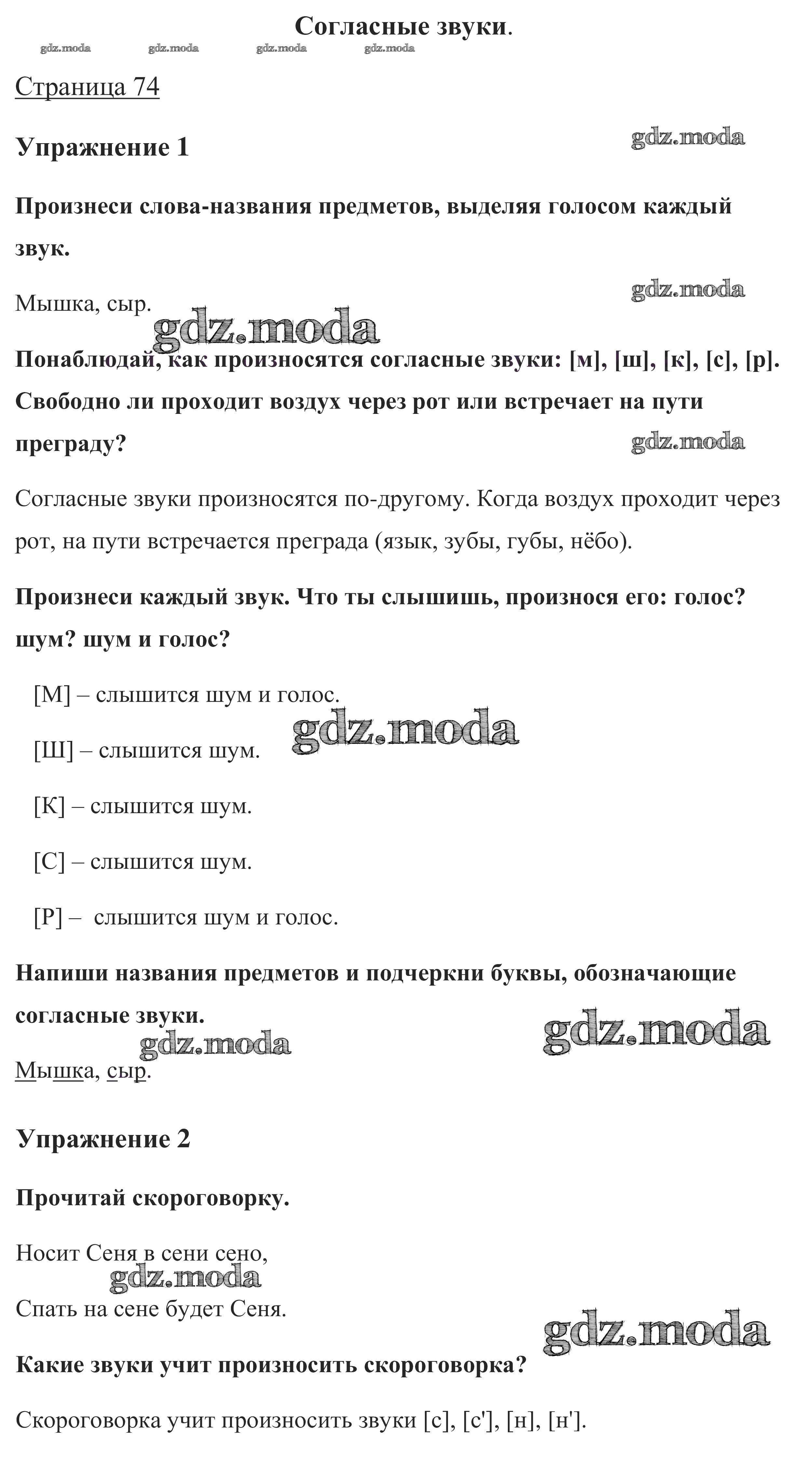 ОТВЕТ на задание № стр. 74 Учебник по Русскому языку 1 класс Канакина Школа России