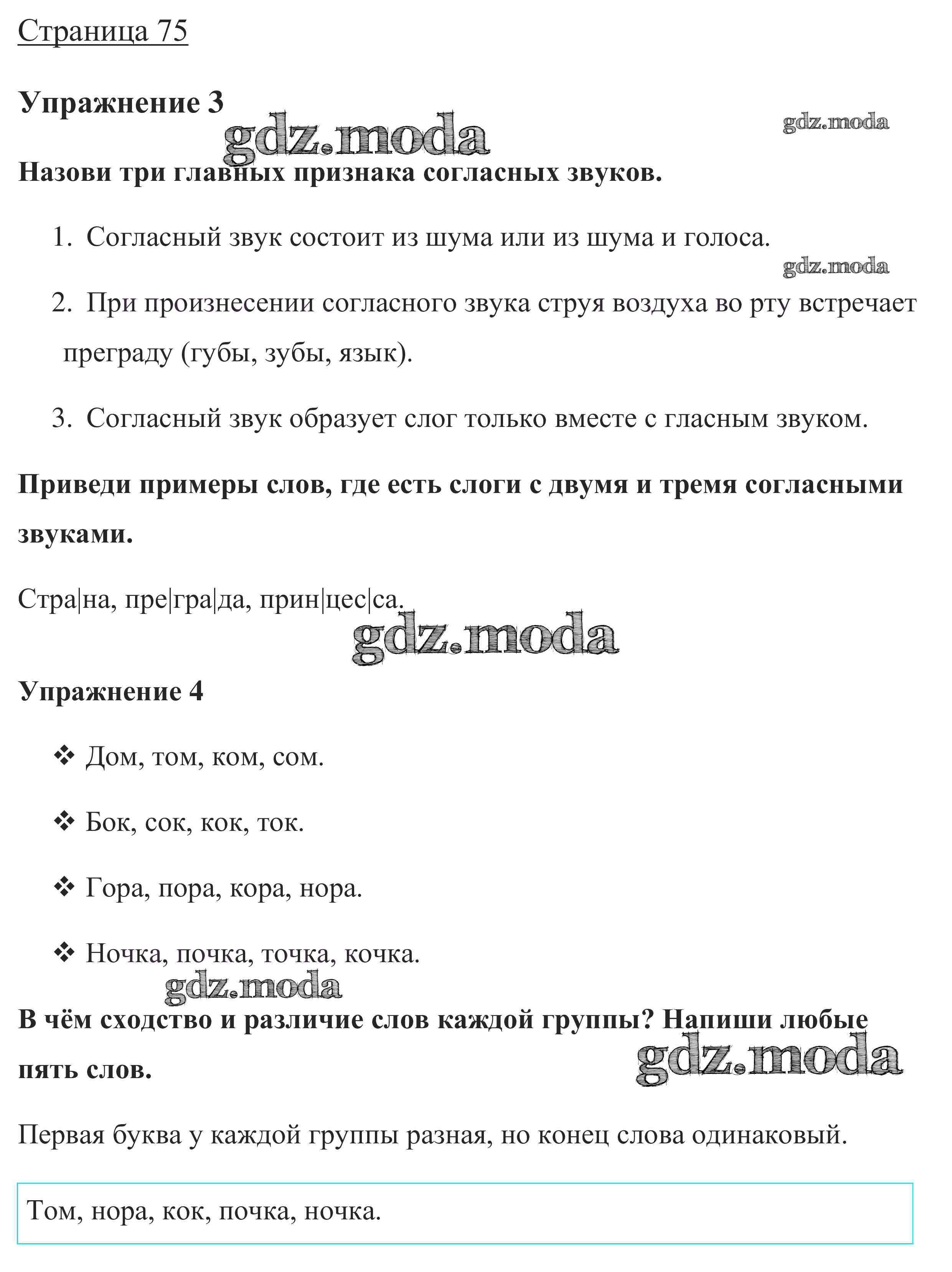 ОТВЕТ на задание № стр. 75 Учебник по Русскому языку 1 класс Канакина Школа России