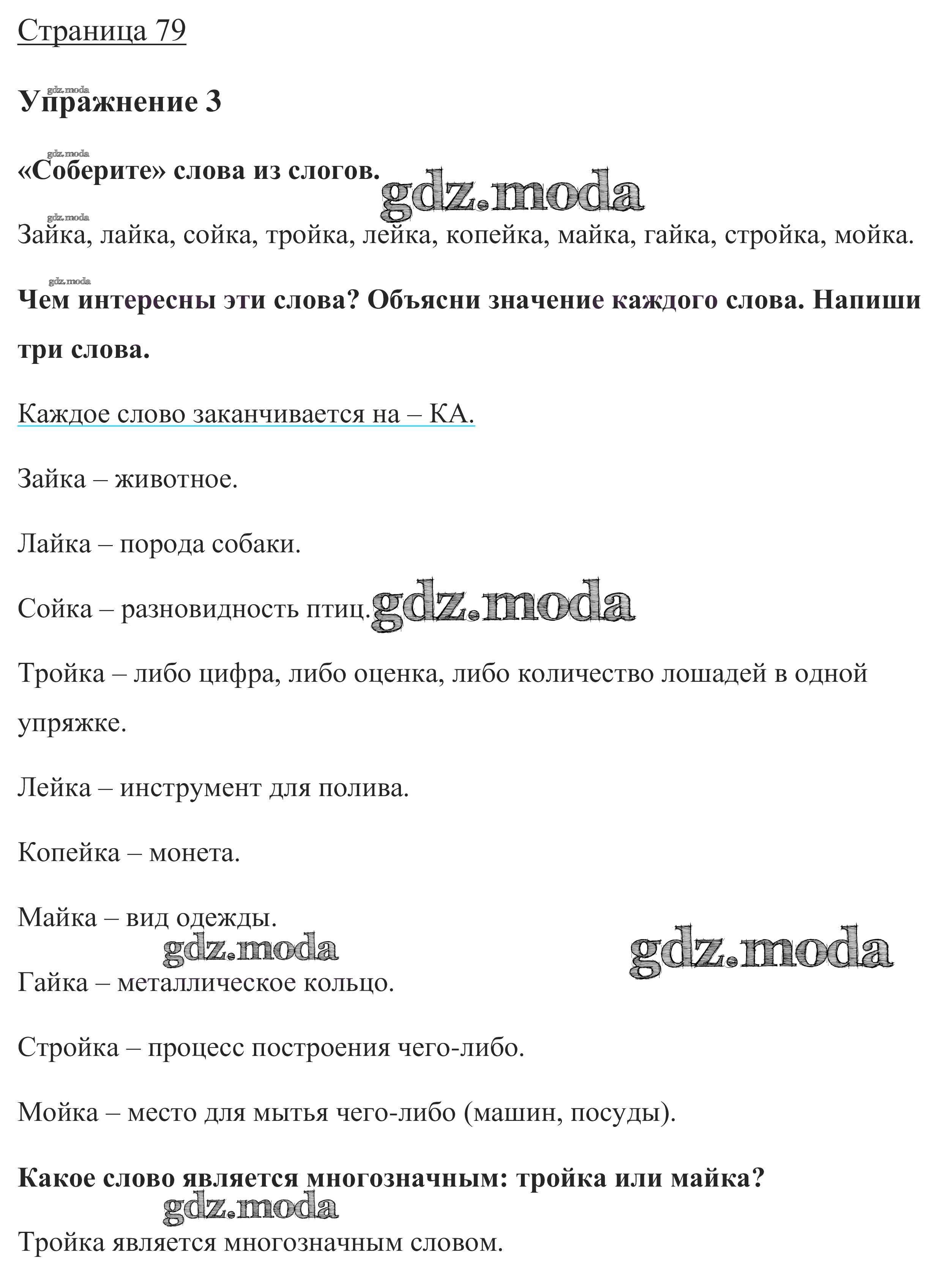 ОТВЕТ на задание № стр. 79 Учебник по Русскому языку 1 класс Канакина Школа России