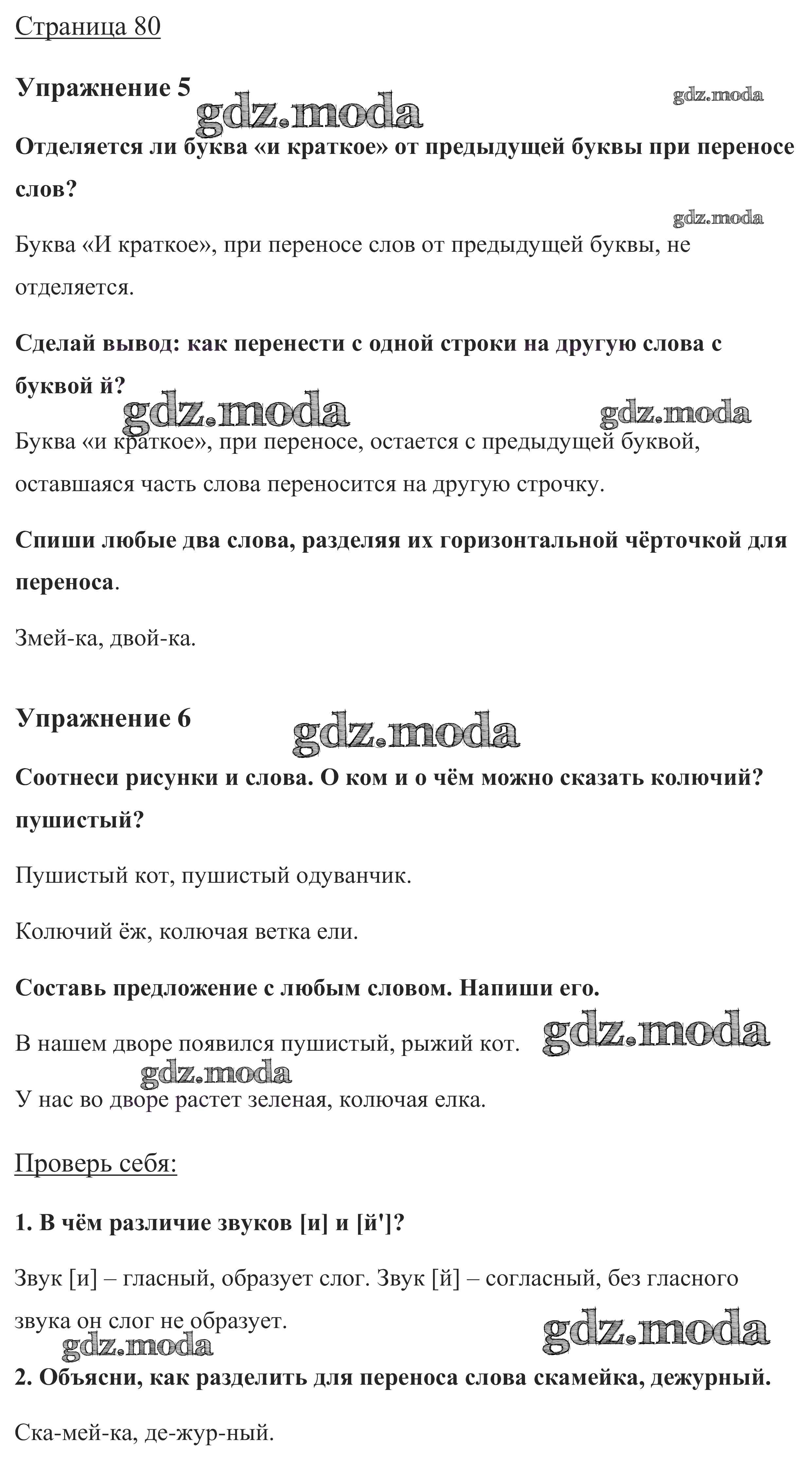 ОТВЕТ на задание № стр. 80 Учебник по Русскому языку 1 класс Канакина Школа России