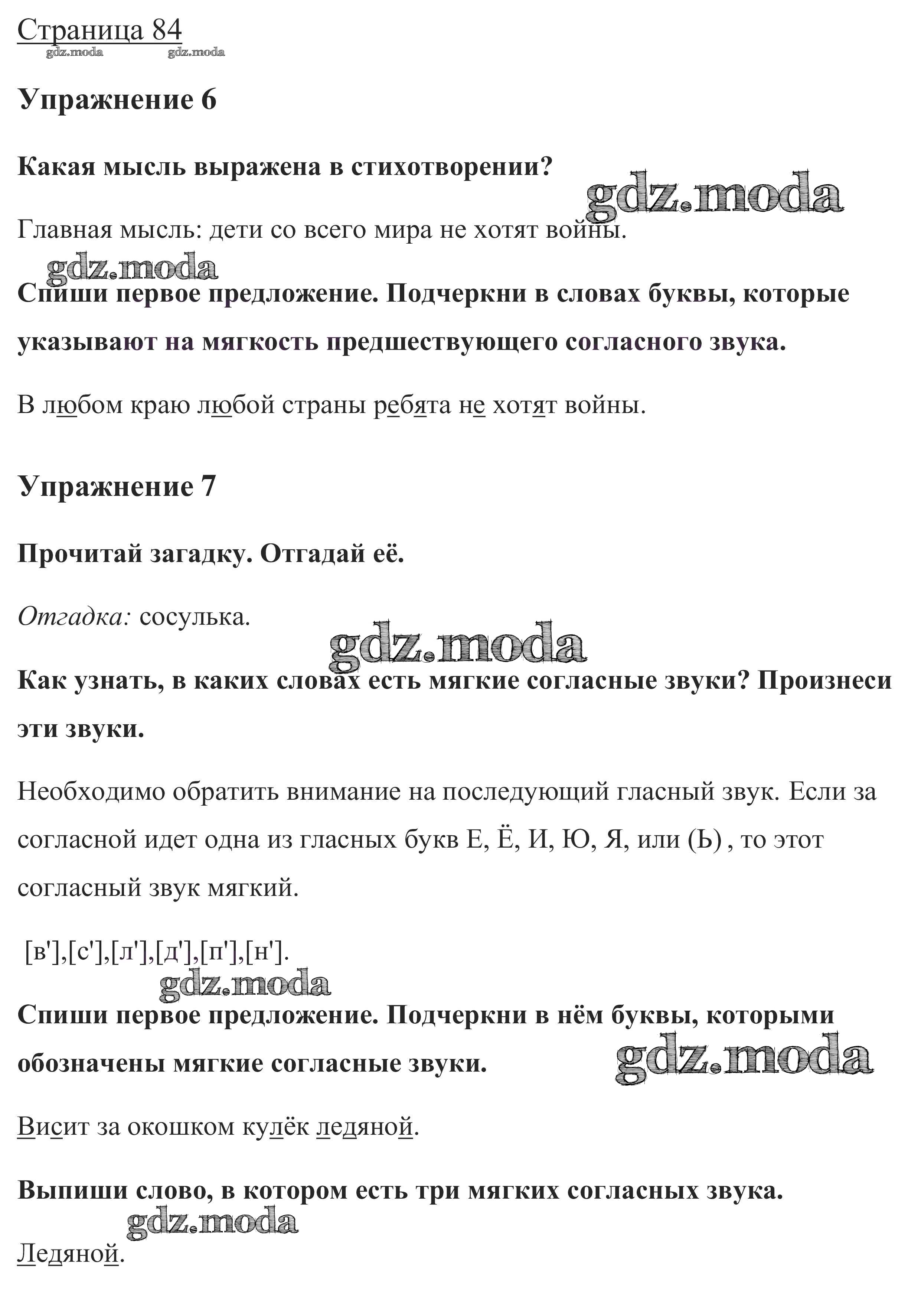 ОТВЕТ на задание № стр. 84 Учебник по Русскому языку 1 класс Канакина Школа России