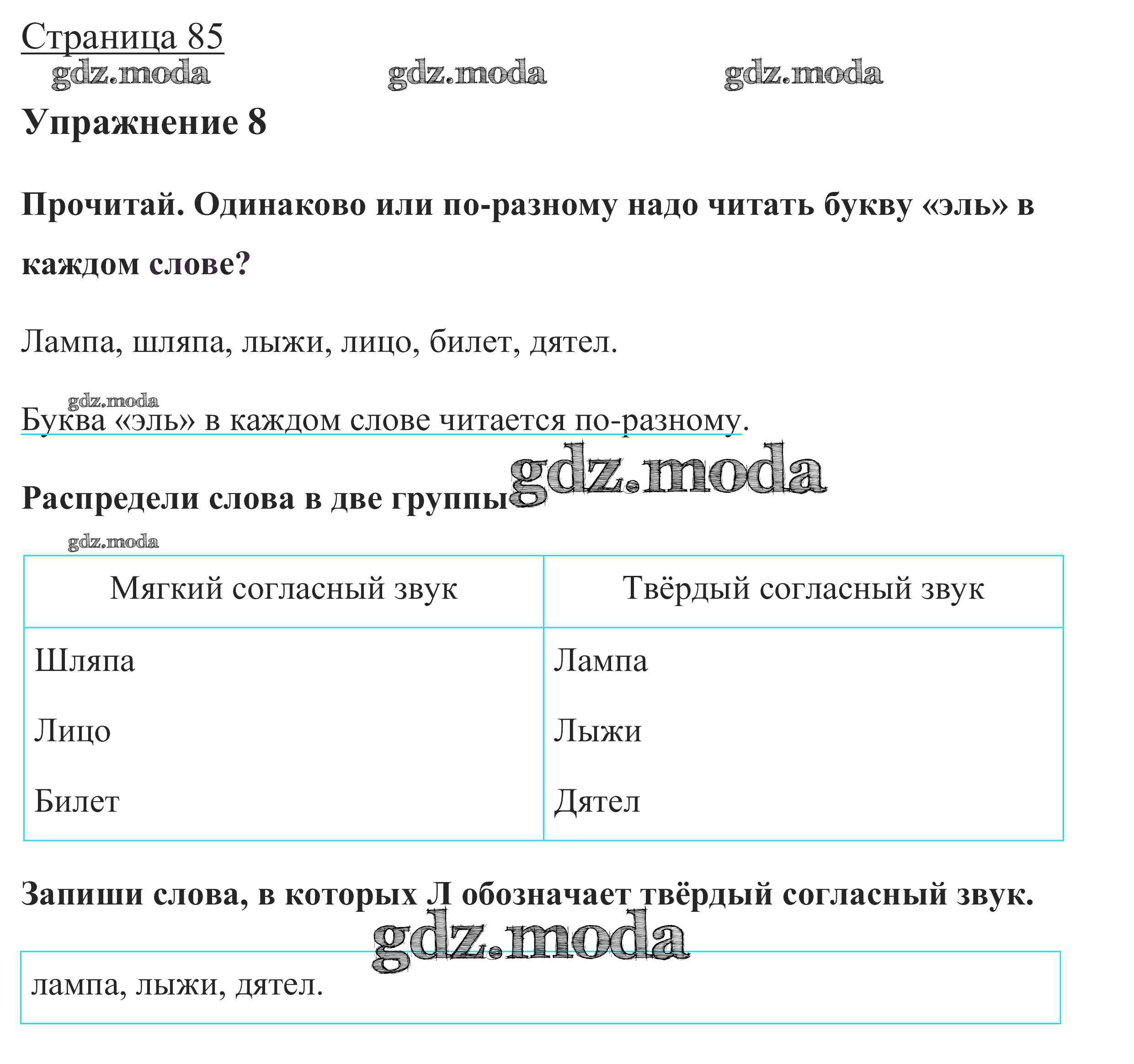 ОТВЕТ на задание № стр. 85 Учебник по Русскому языку 1 класс Канакина Школа России