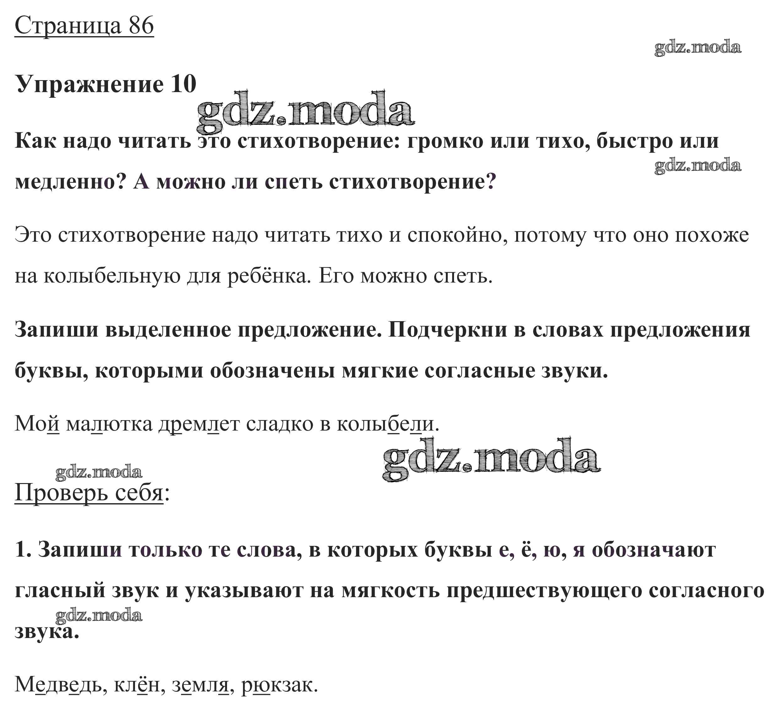 ОТВЕТ на задание № стр. 86 Учебник по Русскому языку 1 класс Канакина Школа России