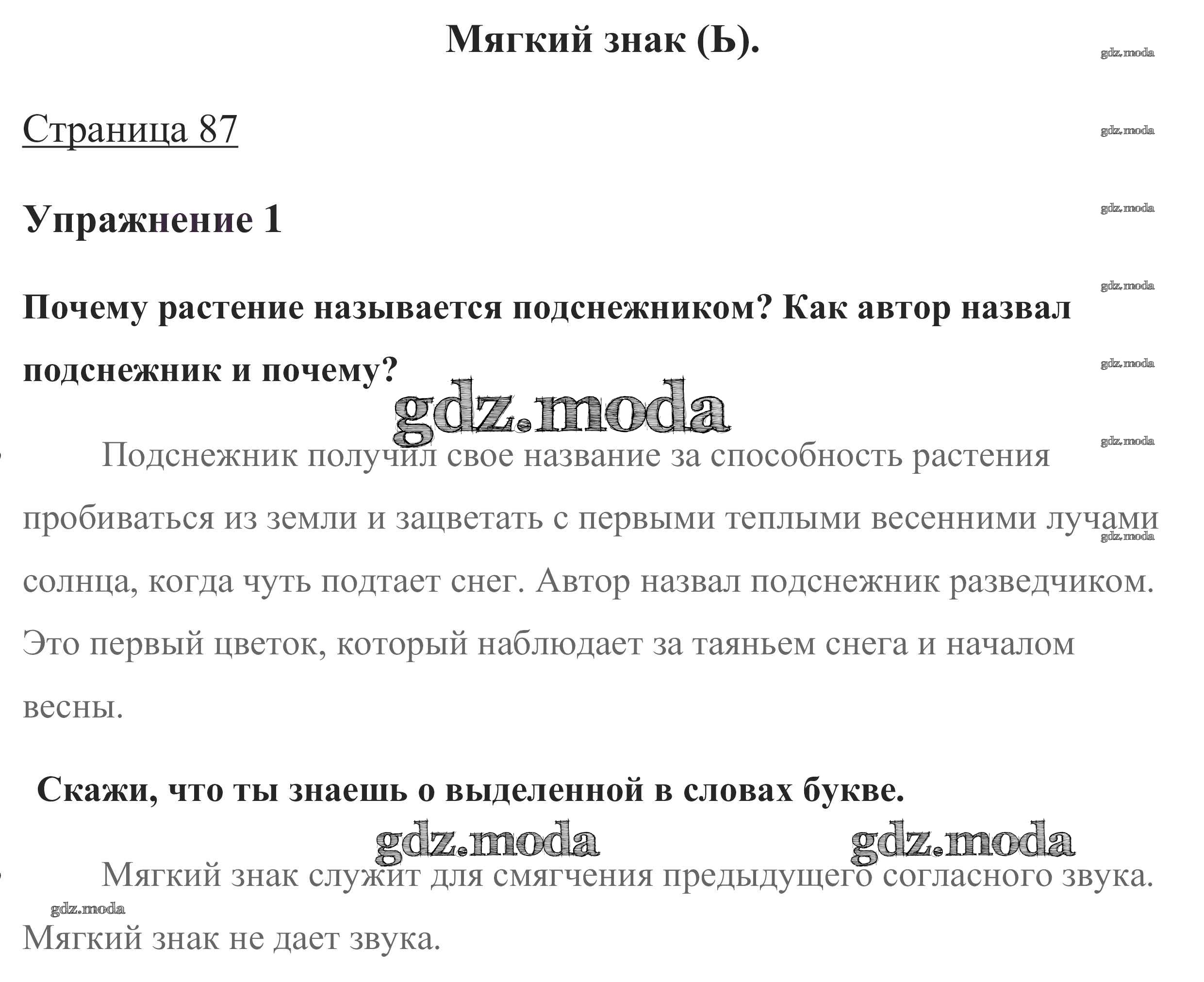 ОТВЕТ на задание № стр. 87 Учебник по Русскому языку 1 класс Канакина Школа России