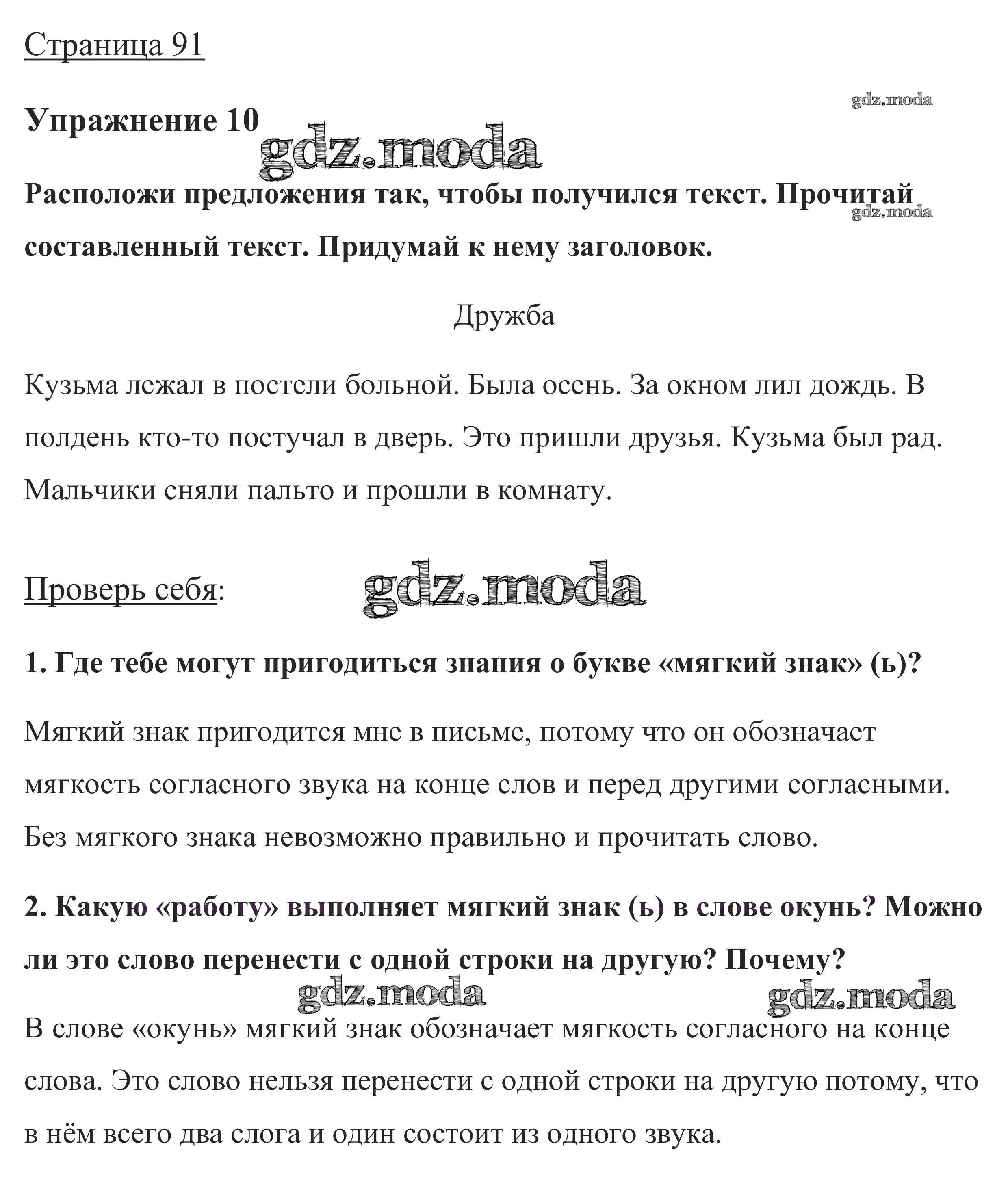 ОТВЕТ на задание № стр. 91 Учебник по Русскому языку 1 класс Канакина Школа России