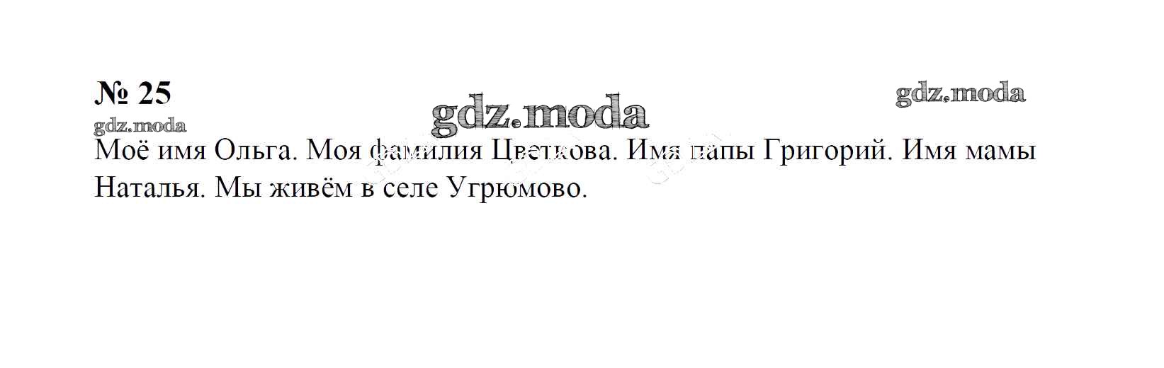 ОТВЕТ на задание № 25 Учебник по Русскому языку 1 класс Рамзаева