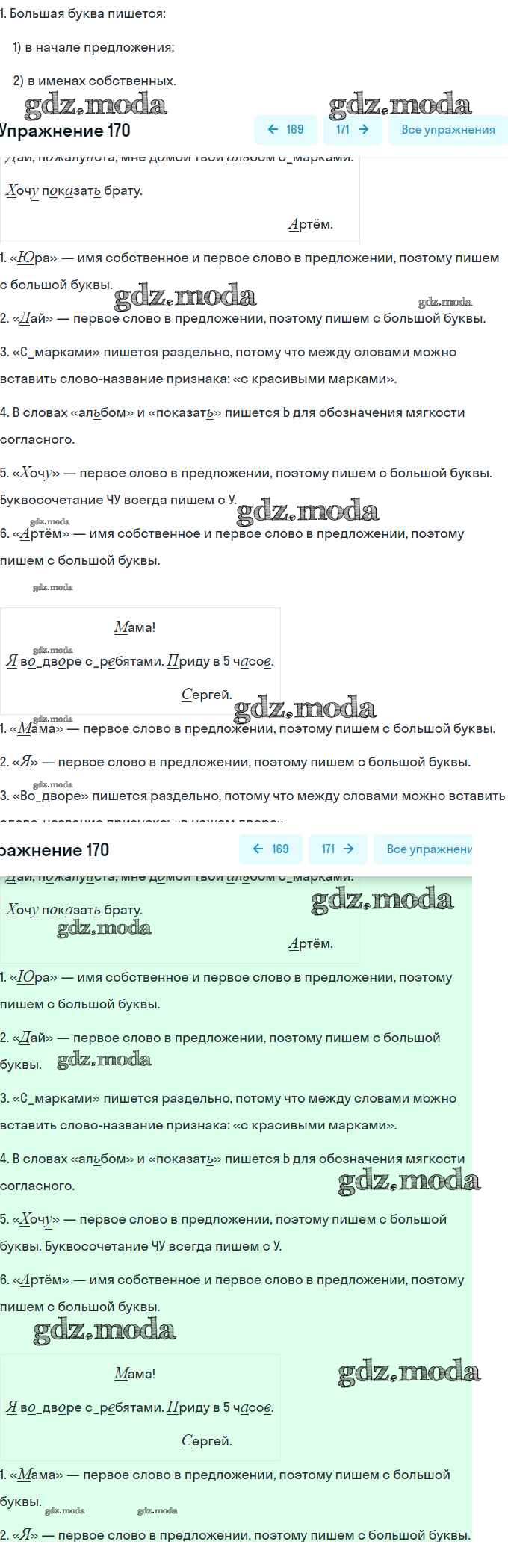 ГДЗ решение к заданию № 170 Русский язык 1 класс Соловейчик М.С. Просвещение 2022 бесплатно на гдз.мода!