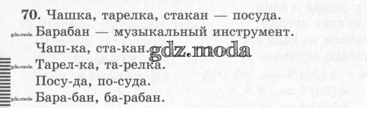 ГДЗ решение к заданию № 70 Русский язык 1 класс Зеленина Л.М. Просвещение 2011 ФГОС бесплатно на гдз.мода!