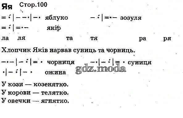 ГДЗ решение к заданию № 100 Украинский язык 1 класс букварь Вашуленко Освiта 2012 бесплатно на гдз.мода!