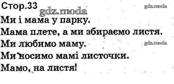 ГДЗ решение к заданию № 33 Украинский язык 1 класс букварь Вашуленко Освiта 2012 бесплатно на гдз.мода!