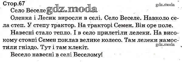 ГДЗ решение к заданию № 67 Украинский язык 1 класс букварь Вашуленко Освiта 2012 бесплатно на гдз.мода!