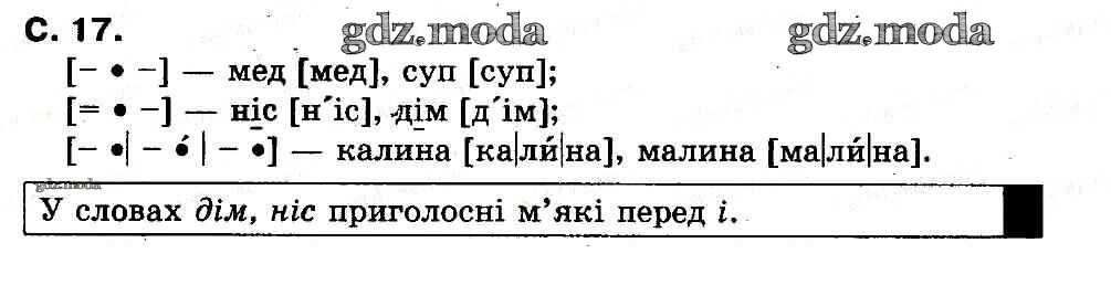 ГДЗ решение к заданию № 17 Украинский язык 1 класс букварь Захарийчук Грамота 2012 бесплатно на гдз.мода!