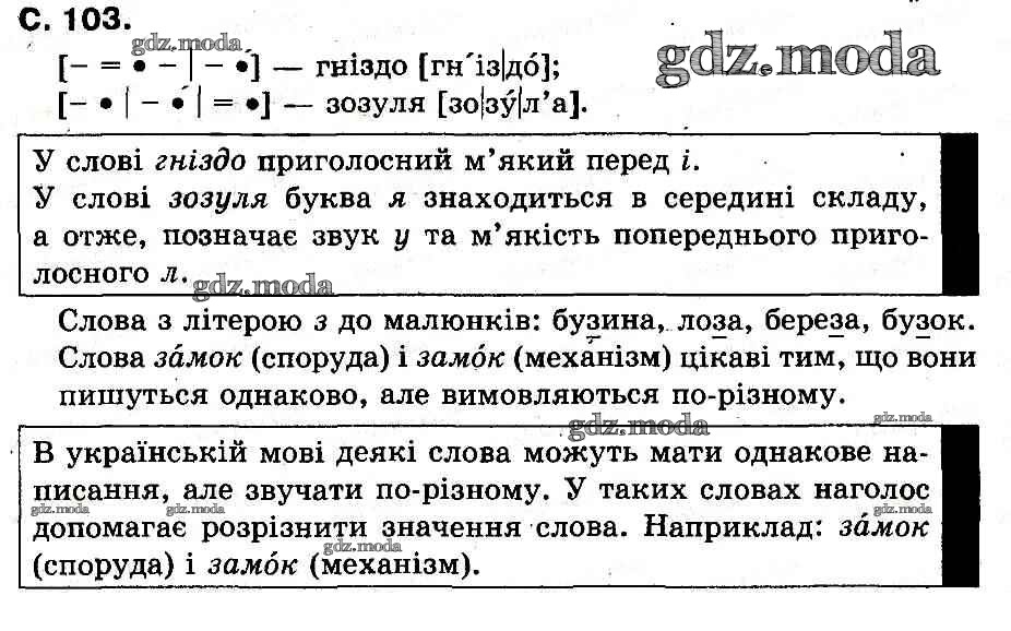 ГДЗ решение к заданию № 103 Украинский язык 1 класс букварь Захарийчук Грамота 2012 бесплатно на гдз.мода!
