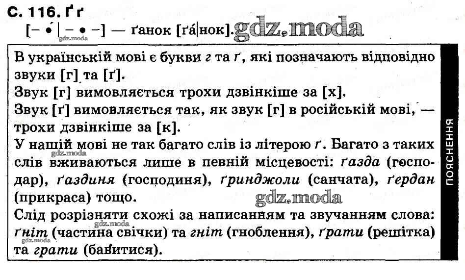 ГДЗ решение к заданию № 116 Украинский язык 1 класс букварь Захарийчук Грамота 2012 бесплатно на гдз.мода!