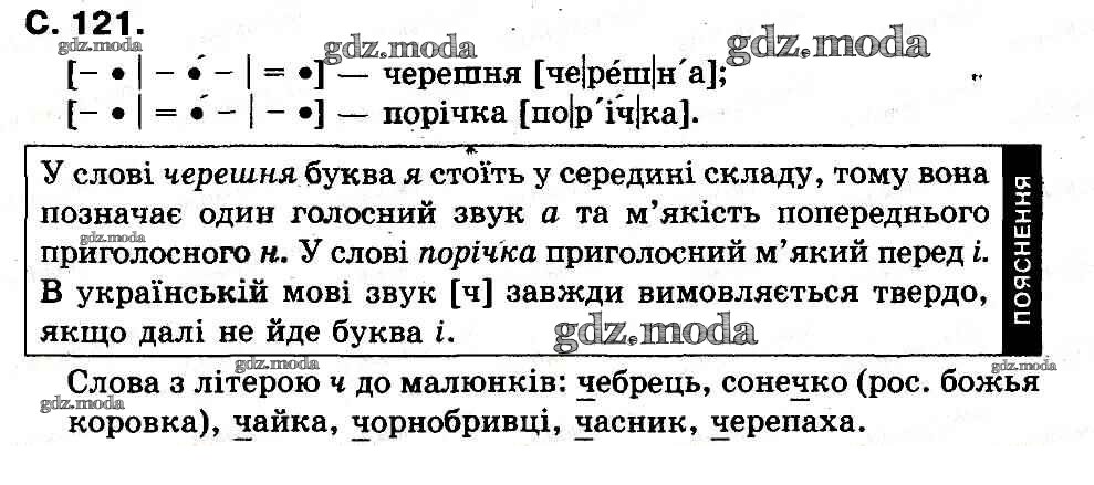 ГДЗ решение к заданию № 121 Украинский язык 1 класс букварь Захарийчук Грамота 2012 бесплатно на гдз.мода!