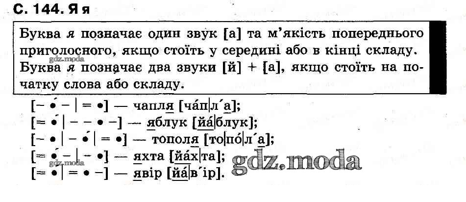 ГДЗ решение к заданию № 144 Украинский язык 1 класс букварь Захарийчук Грамота 2012 бесплатно на гдз.мода!