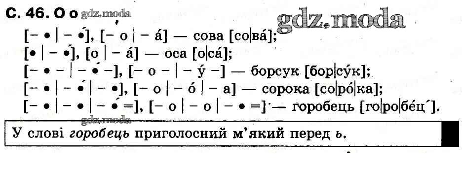 ГДЗ решение к заданию № 46 Украинский язык 1 класс букварь Захарийчук Грамота 2012 бесплатно на гдз.мода!