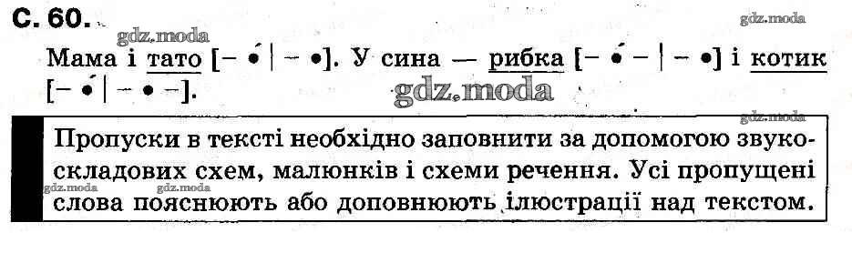 ГДЗ решение к заданию № 60 Украинский язык 1 класс букварь Захарийчук Грамота 2012 бесплатно на гдз.мода!