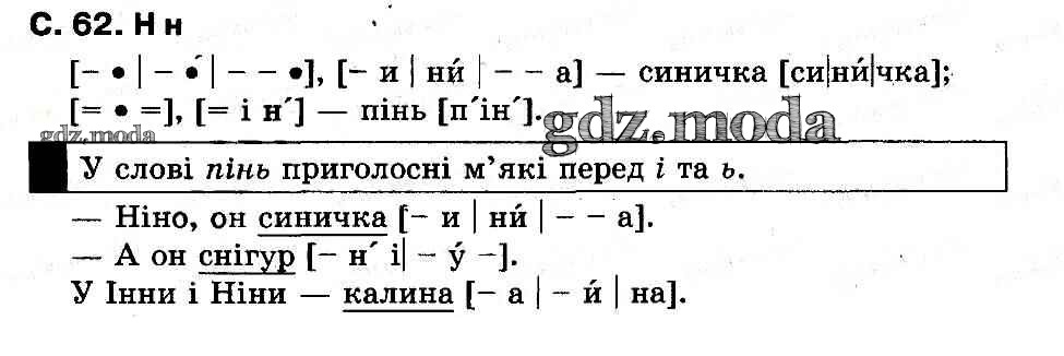ГДЗ решение к заданию № 62 Украинский язык 1 класс букварь Захарийчук Грамота 2012 бесплатно на гдз.мода!